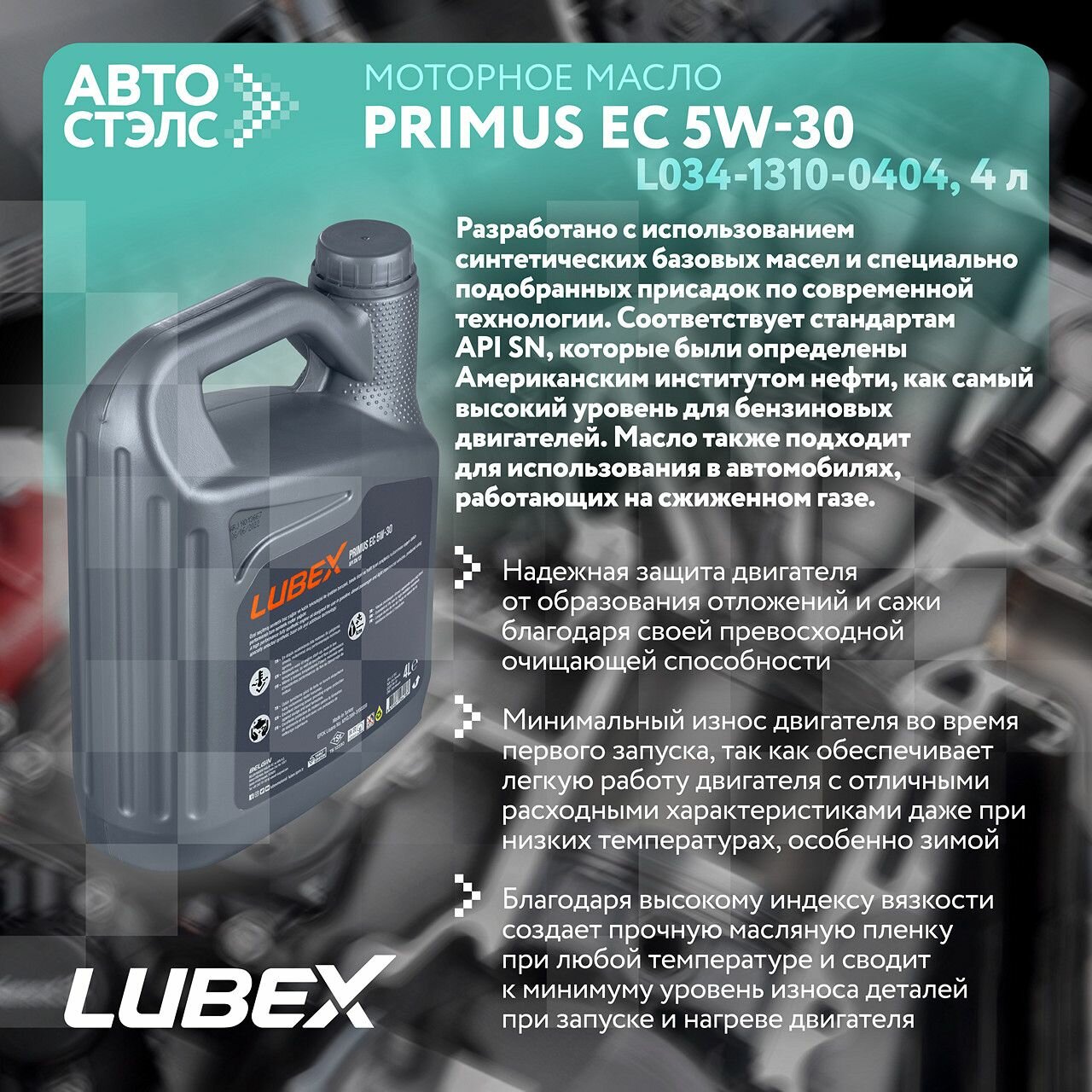 L034-1310-0404 LUBEX Синт. мот.масло PRIMUS EC 5W-30 SN (4л)