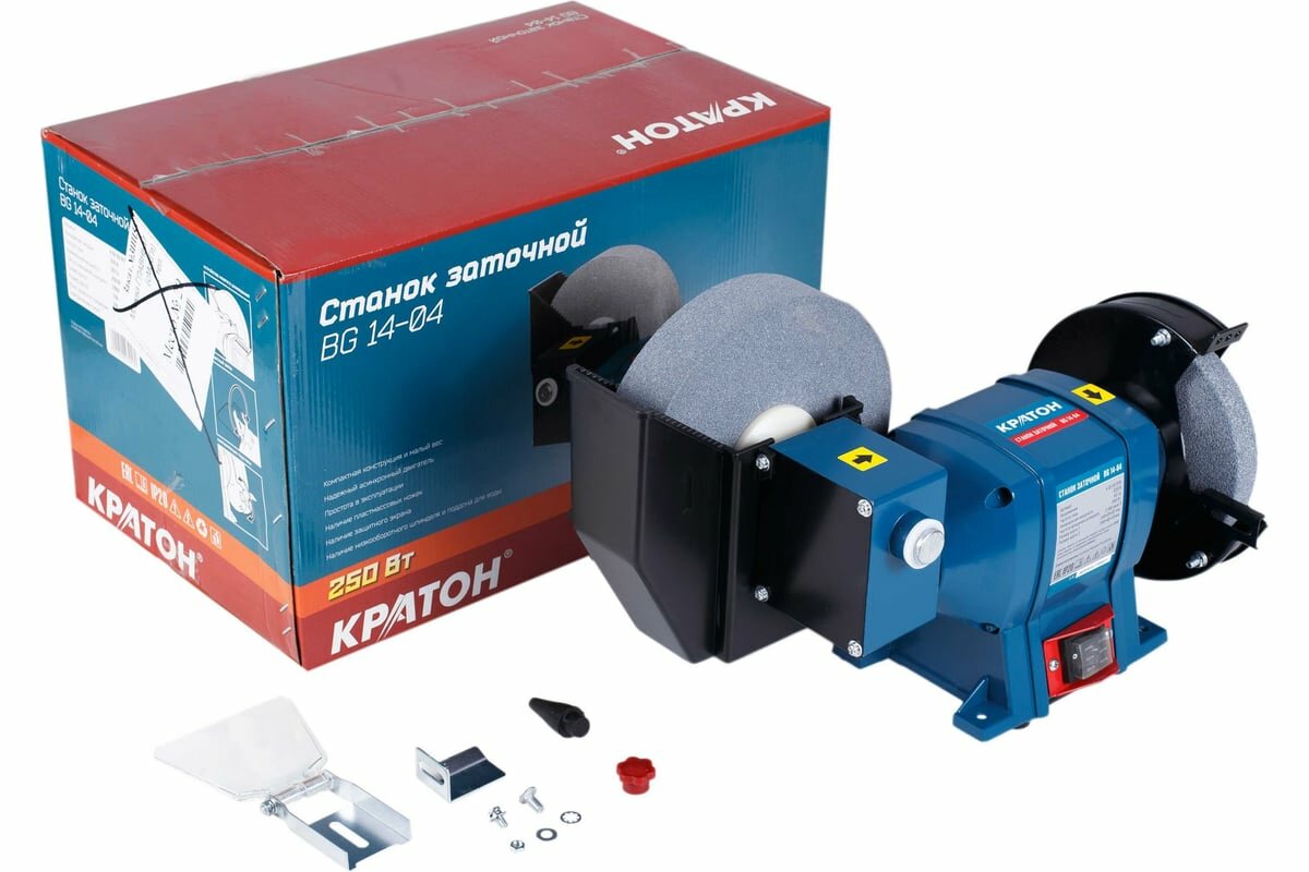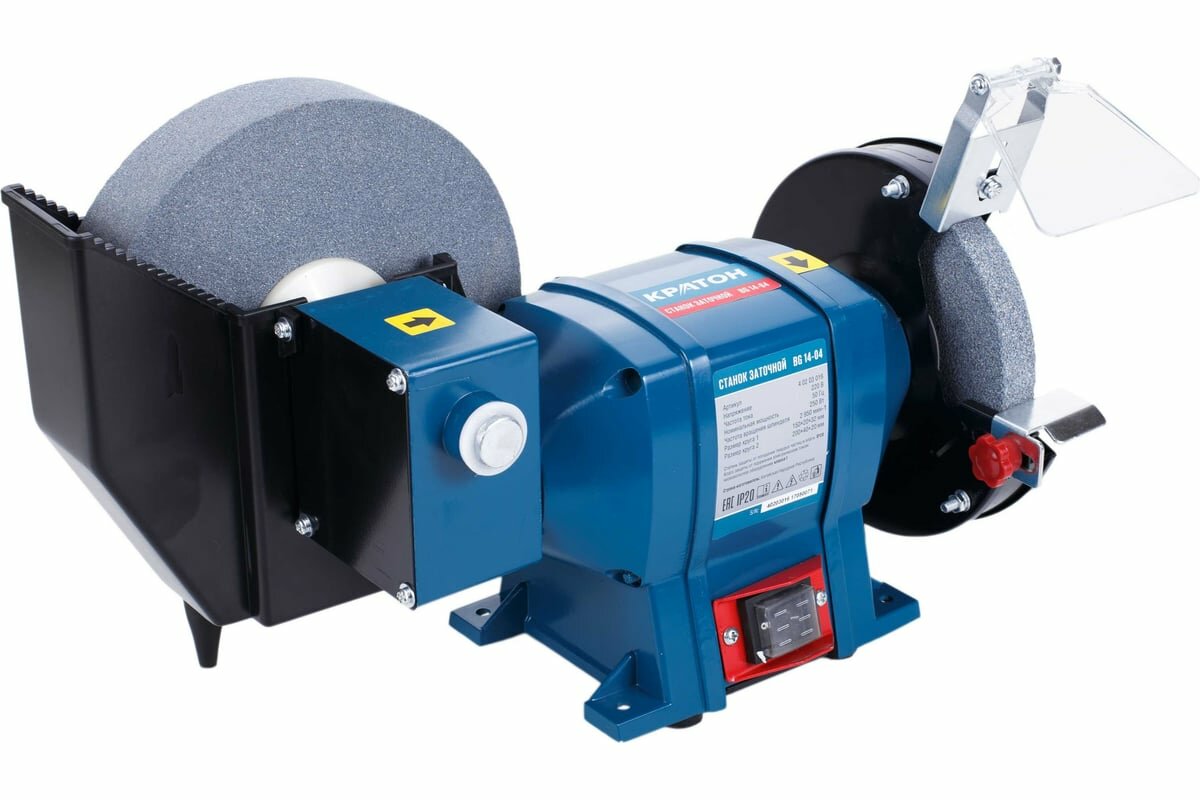 Станок заточной Кратон BG 14-04 (мощность: 250 Вт, Размеры шлифовального круга 150 32 20 мм, Поддон для охлаждения)