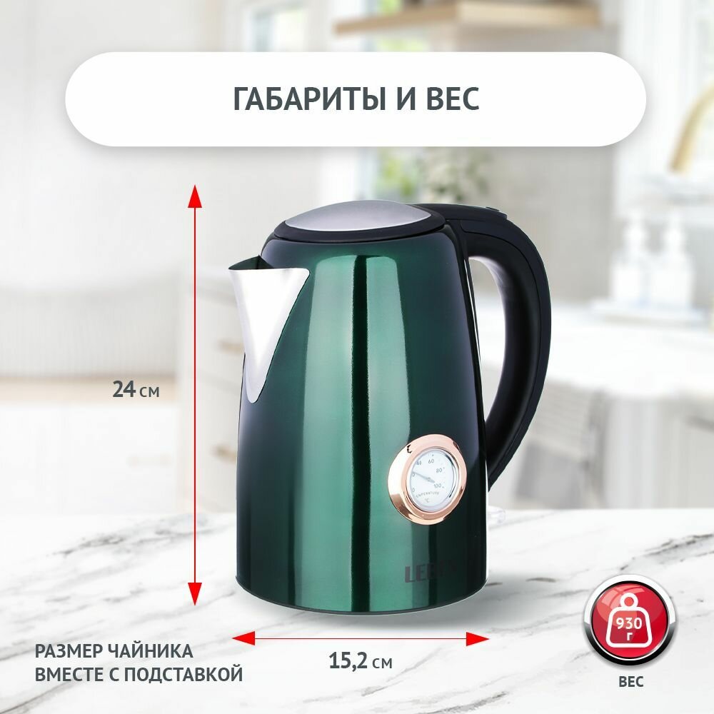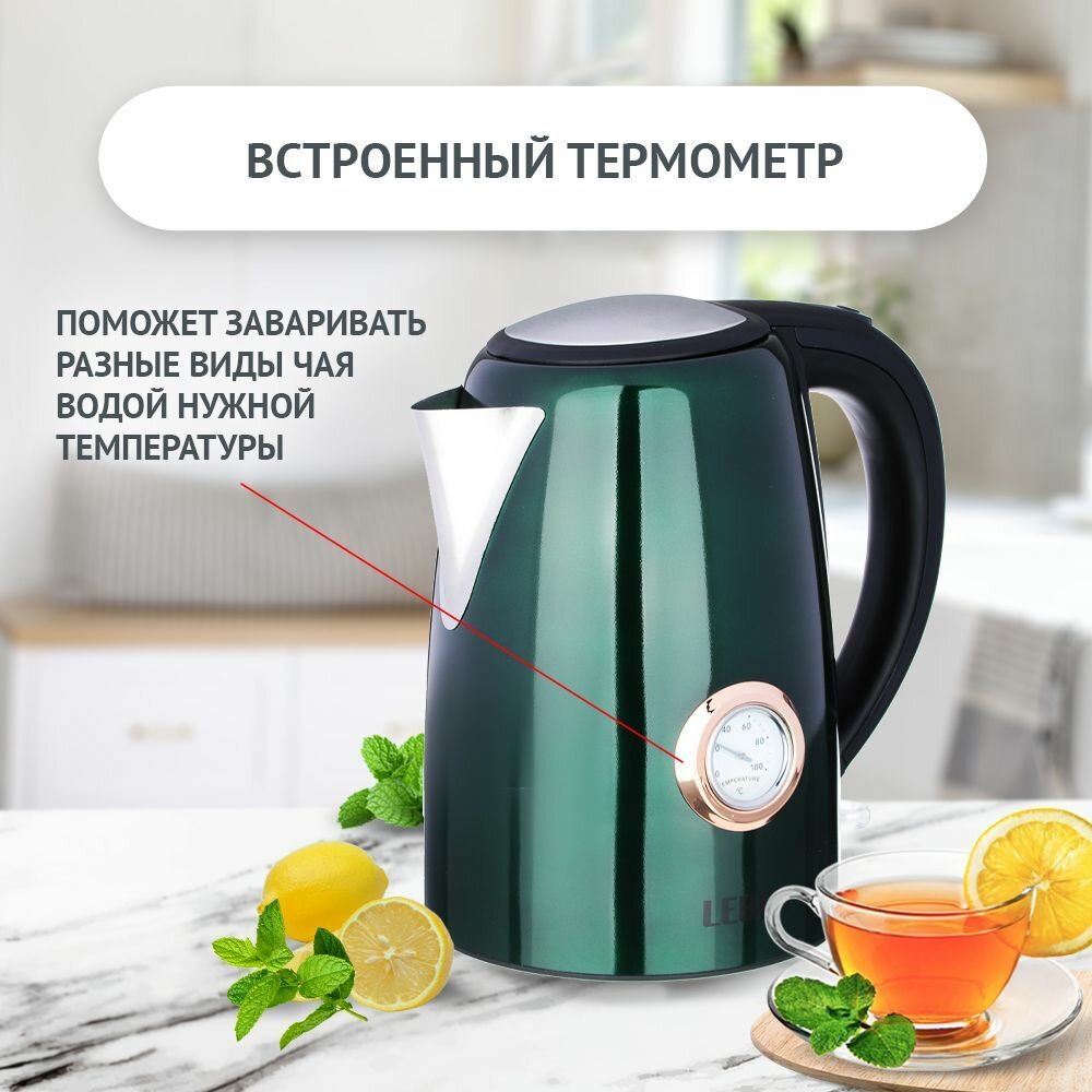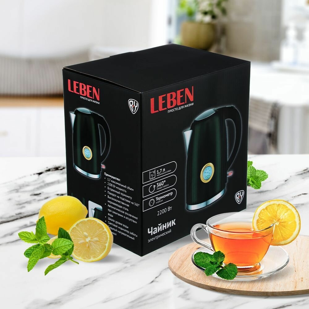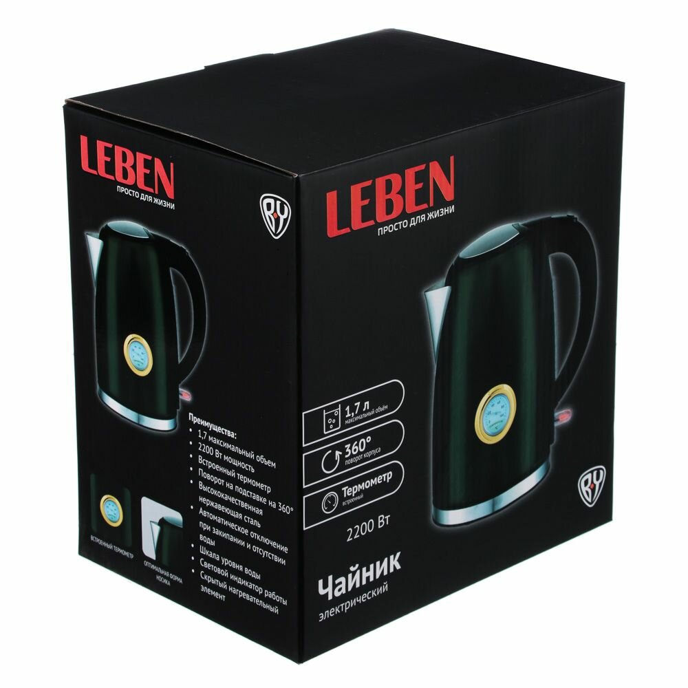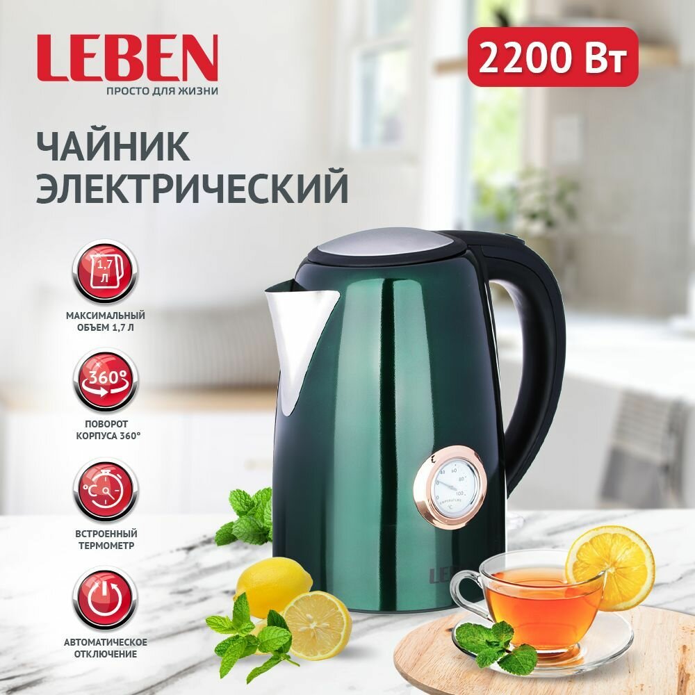 Купить LEBEN Чайник электрический 1,7л, 2200Вт, скрытый нагр.элемент, автооткл., термометр, сталь