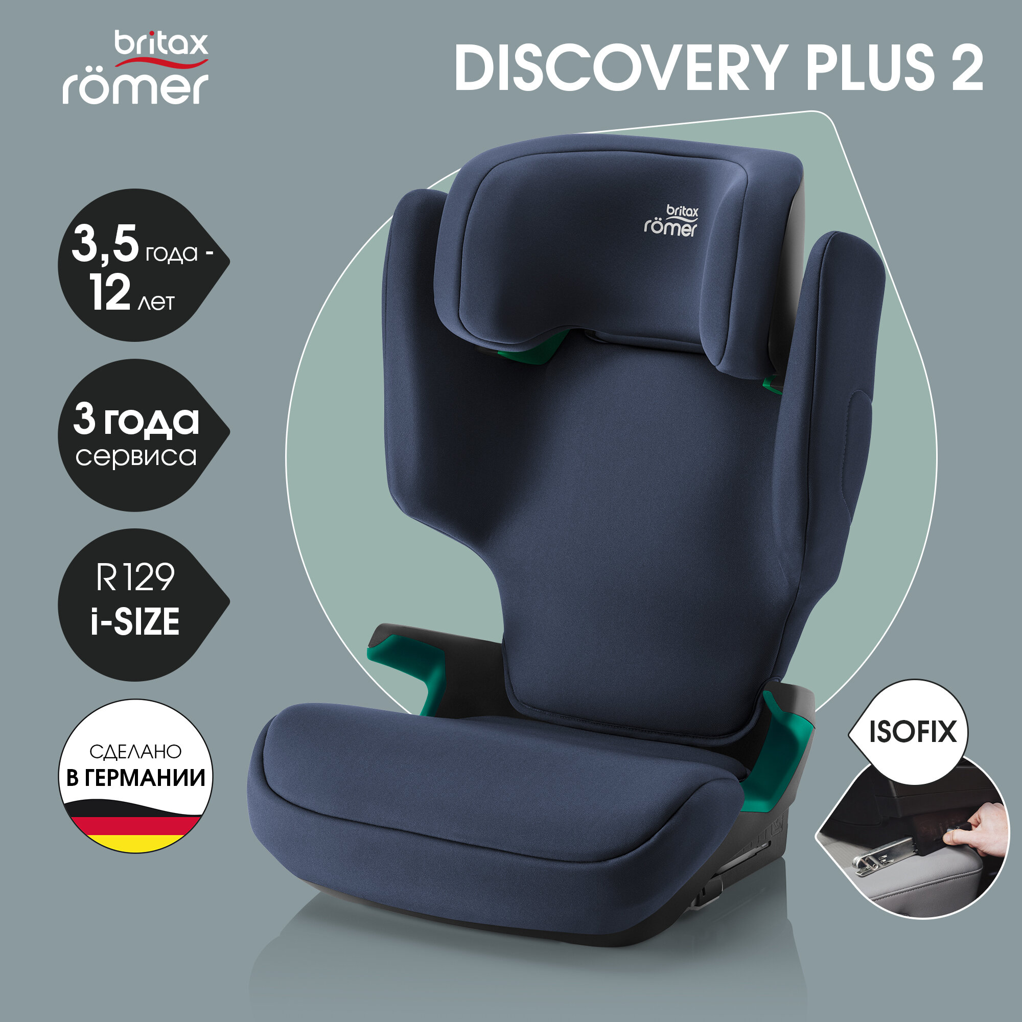 Купить Автокресло детское Britax Roemer DISCOVERY PLUS 2 Moonlight Blue для детей от 3,5 до 12 лет, ростом 100-150 см, весом 15 - 36 кг, с isofix, синий