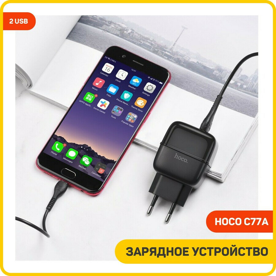 СохранитьСЗУ, 2 USB 2.4A (C77A), HOCO, Micro, черный интересное: