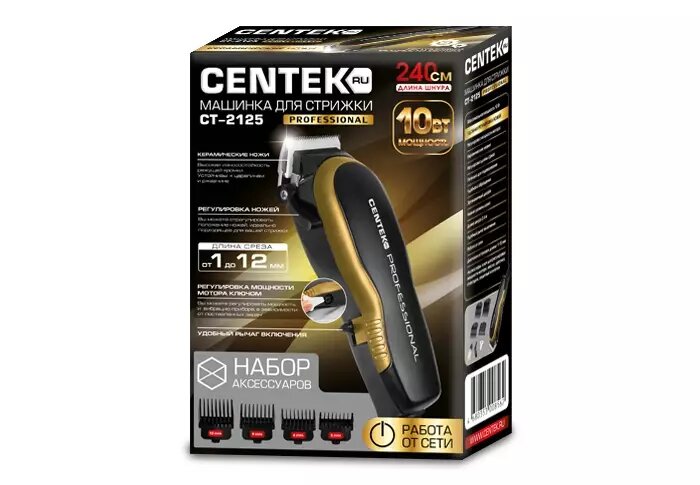 Купить Centek Машинка для стрижки (чер/зол) профессиональная, керам ножи, работа от сети, шнур 2,4м CT-2125
