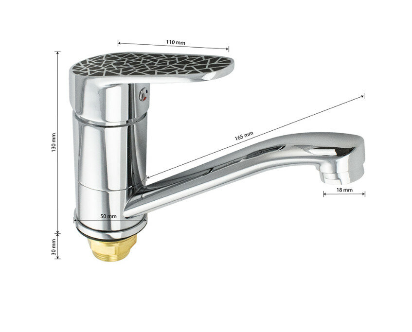 Смеситель кухонный Brimix 3350s. Материал - Цинковый сплав, цвет - хром.