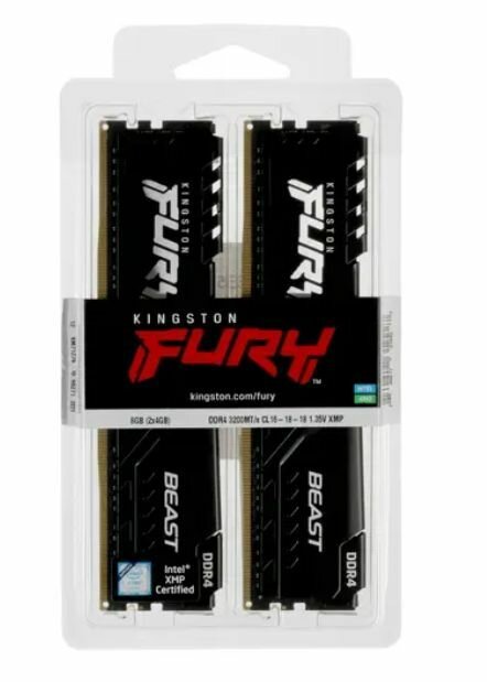 8GB Kingston DDR4 3200 DIMM FURY Beast Black Gaming Memory KF432C16BBK2/8 Non-ECC, CL16, 1.35V, KF432C16BBK2/8 512x8 (Kit of 2х4Gb), RTL (319927)