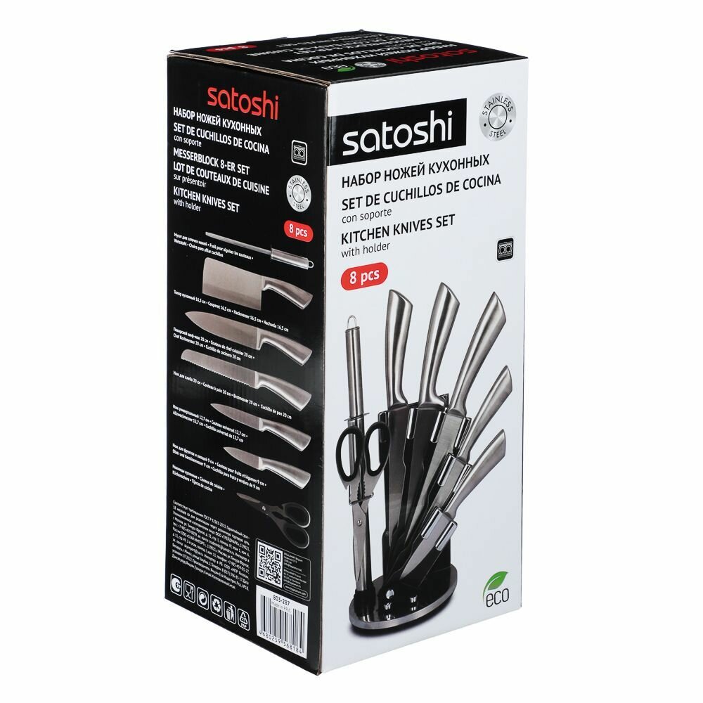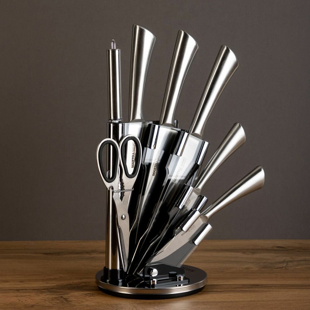 Набор ножей SATOSHI Мартелл кухонных 8 предметов, ручки хром, акриловая подставка для ножей
