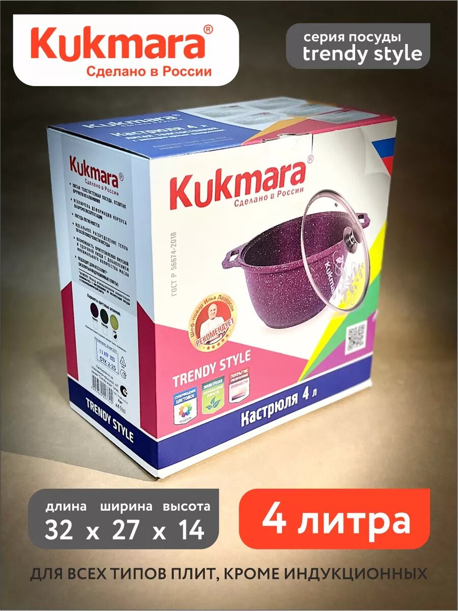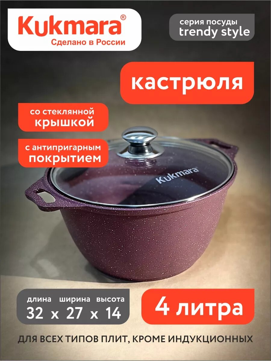 Кастрюля Kukmara Trendy style, 4 л, стеклянная крышка, антипригарное покрытие, мистерия