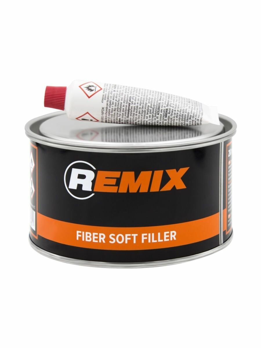 Шпатлевка со стекловолокном для кузова автомобиля REMIX FIBER SOFT FILLER 1,8 кг/ 2К шпатлевка со стекловолокном с отвердителем в комплекте