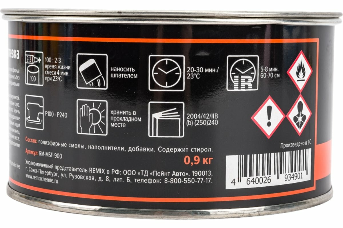 RMMSF900 REMIX Шпатлевка полиэфирная универсальная 2К 0,9 кг REMIX RM-MSF-900