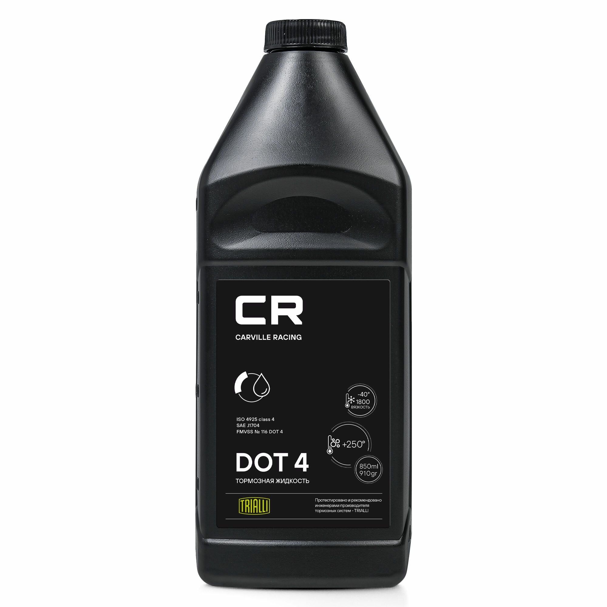 Тормозная жидкость CR DOT 4 t>250°C вязкость<1500 850мл/910гр (L4250006) CARVILLE RACING Артикул: l4250006