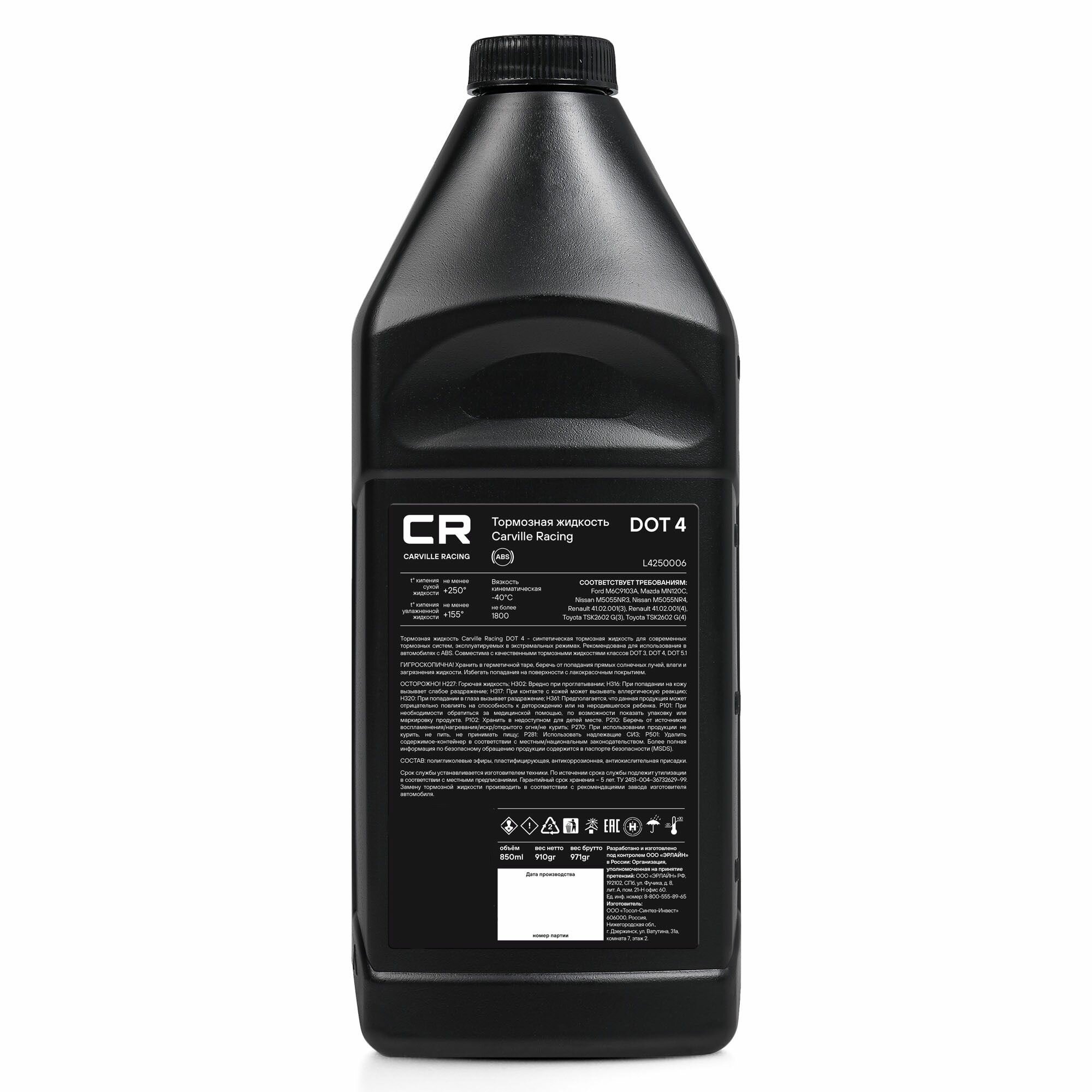 Жидкость Тормозная Carville Racing Cr Dot4 850 Мл L4250006 Carville Racing арт. L4250006