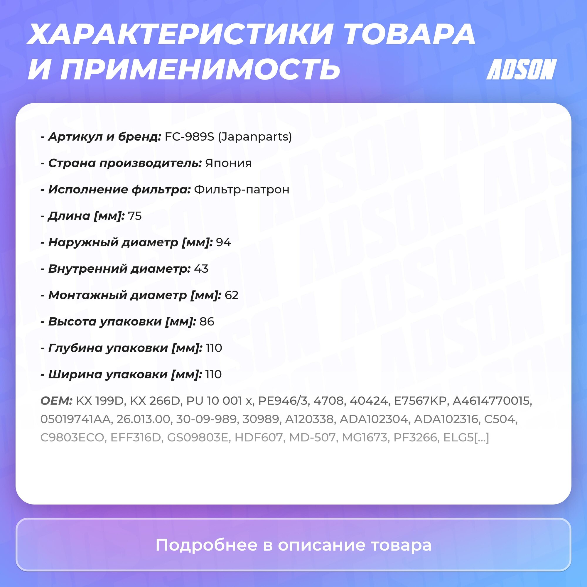 Топливный фильтр FC-989S japanparts 1шт интересное:
