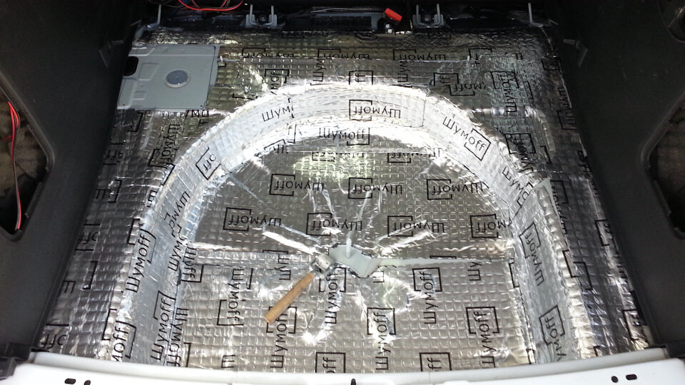Упаковки из 22 листов хватило, чтобы зашумить жигулёвские крышу и заднюю полку - ещё один лист остался про запас. |