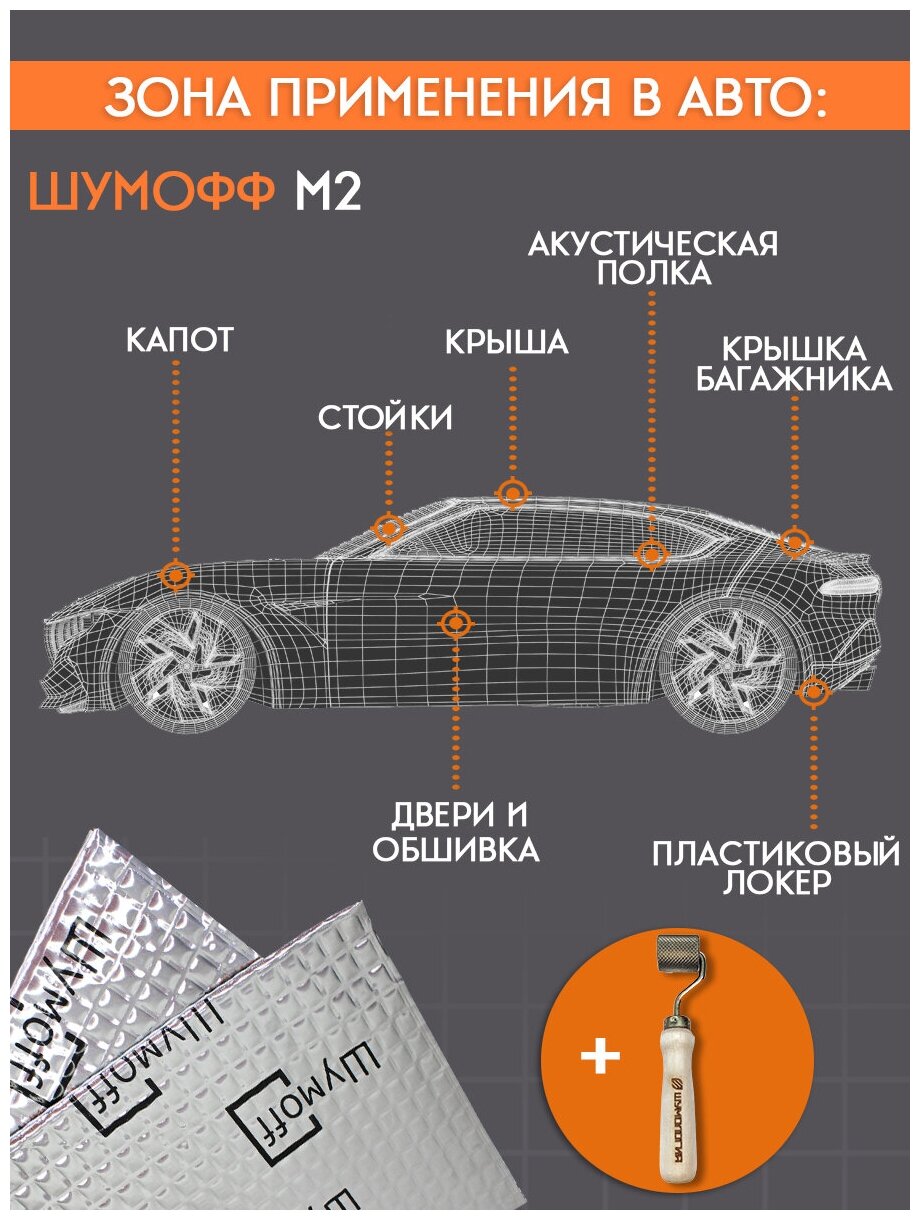 Шумоизоляция для автомобиля Шумофф М2 упаковка 11 листов Виброизоляция звукоизоляция машины, вибродемпфер для дверей, арок, багажника и пола авто
