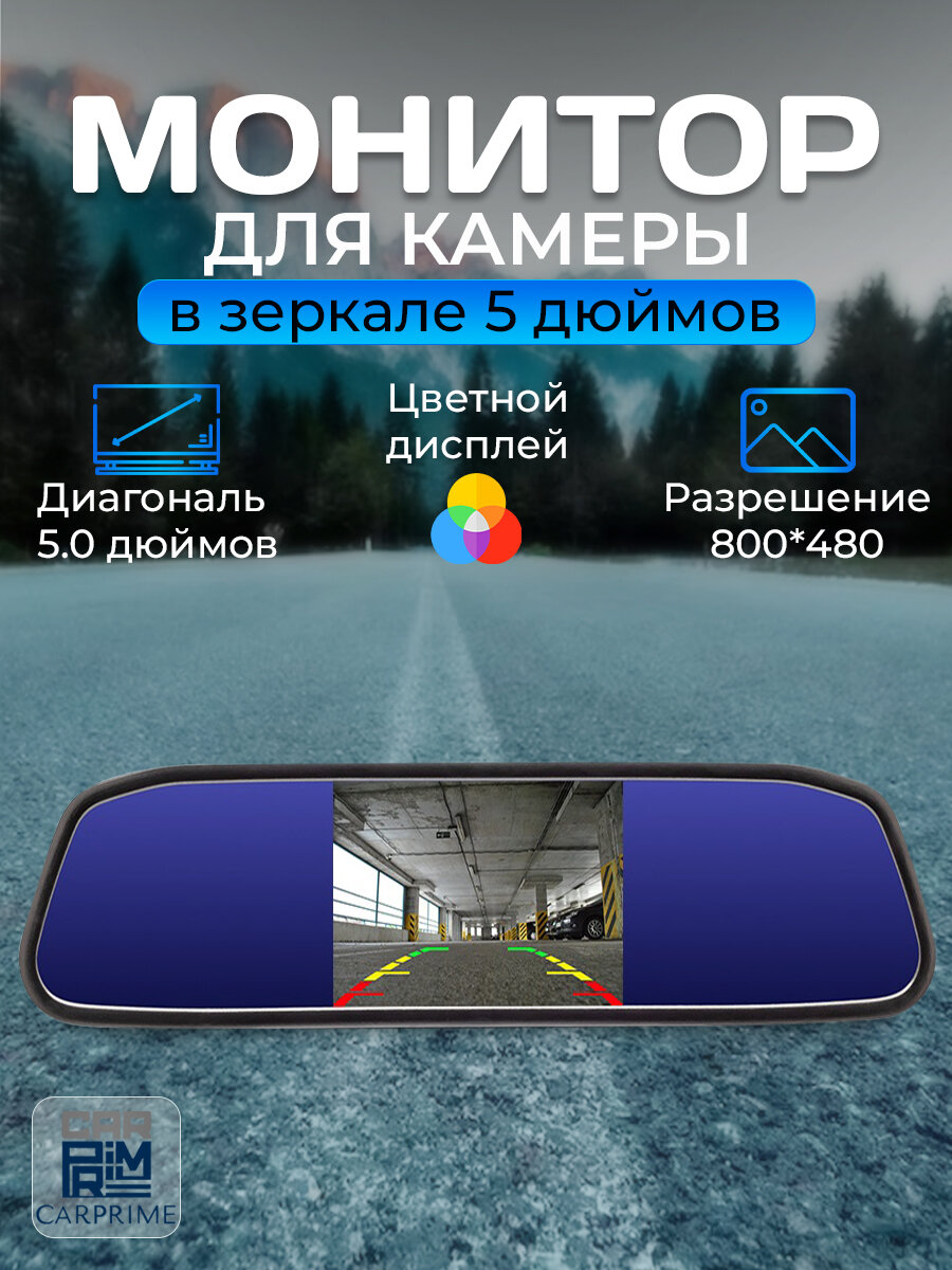 Зеркало монитор 5 дюймов для камер заднего вида CarPrime. интересное: