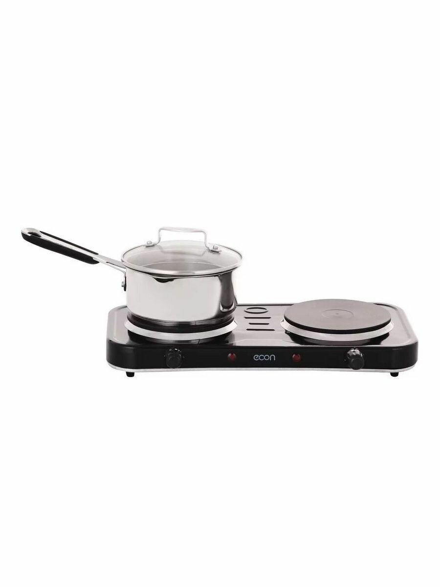 Плитка электрическая Econ ECO-232HP, 2 конфорки, 2000 Вт, нагреватель диск, чёрная