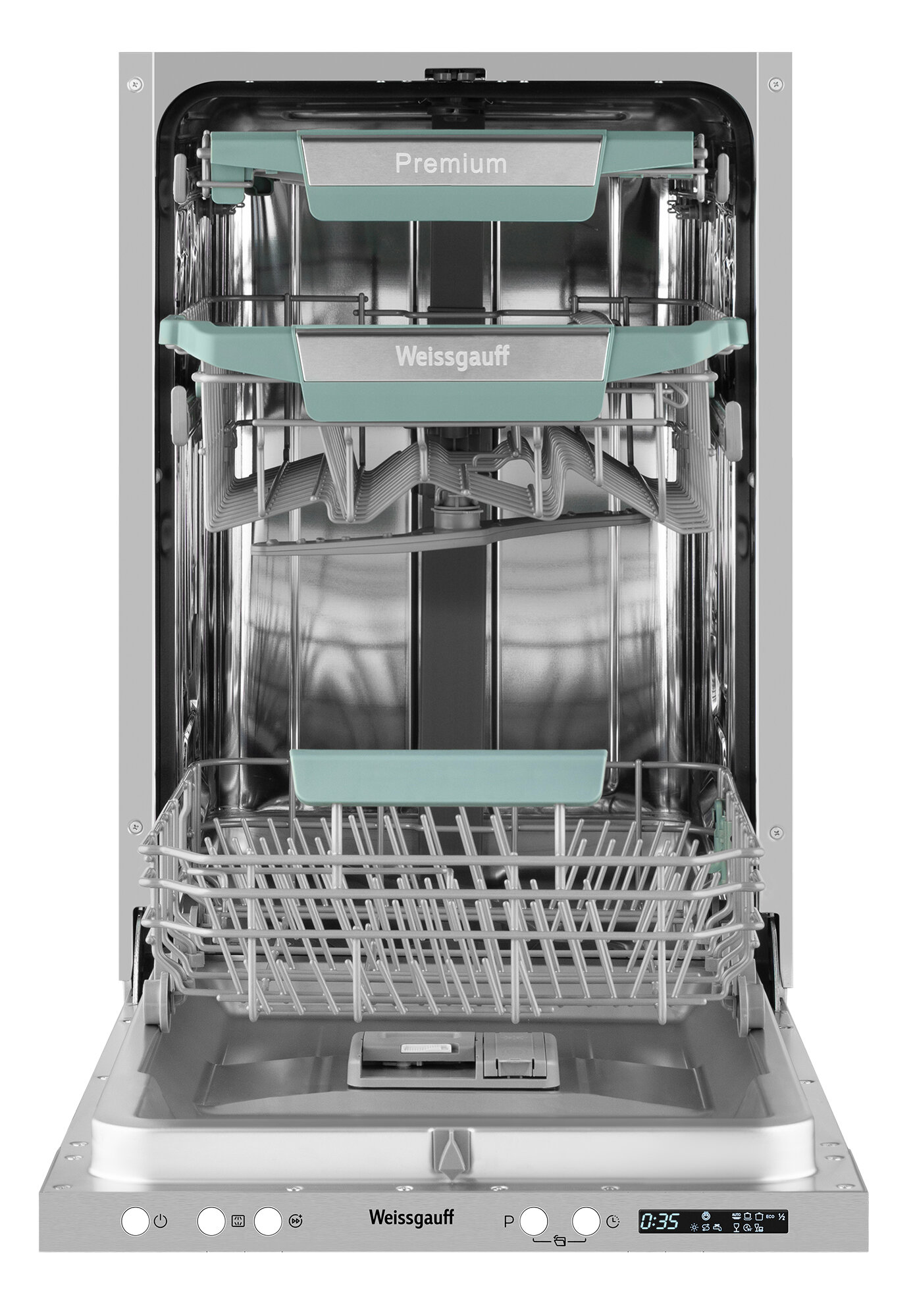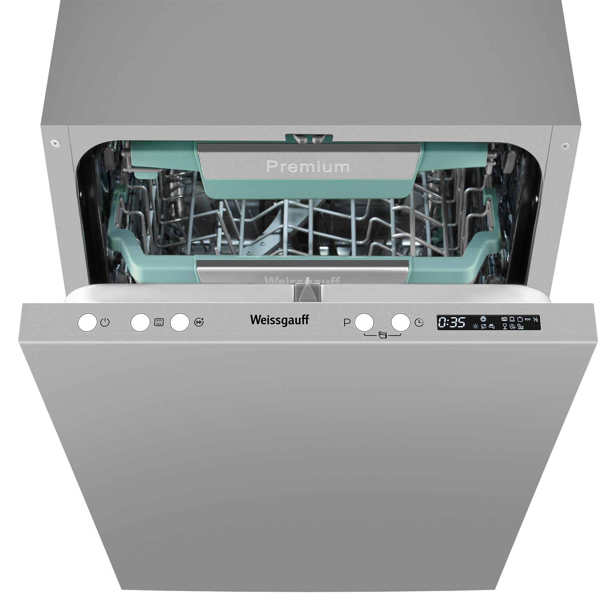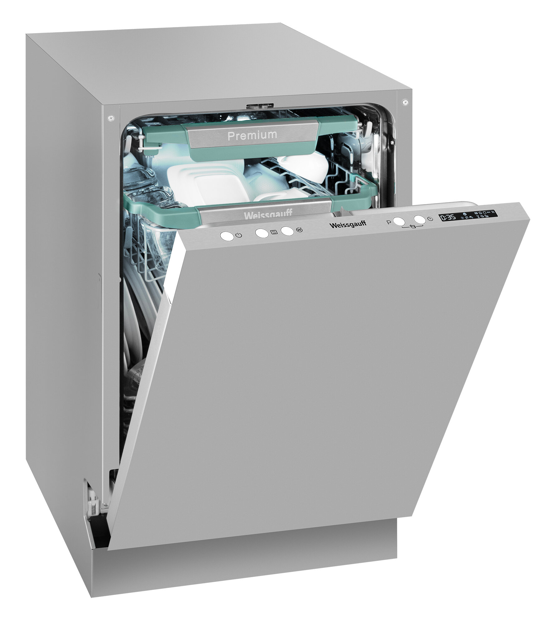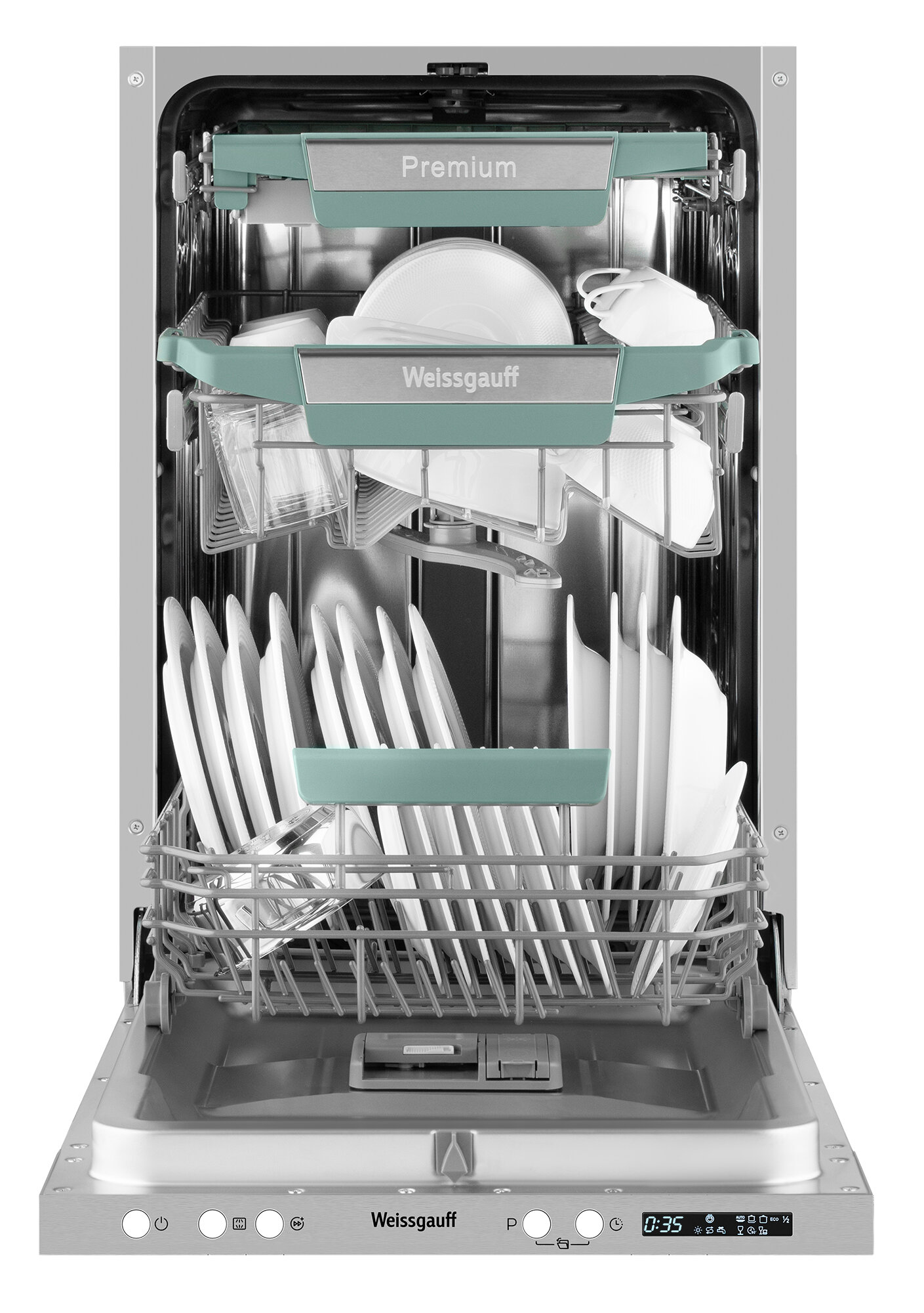 Встраиваемая посудомоечная машина WEISSGAUFF BDW 4573 D, узкая, ширина 44.8см, полновстраиваемая, загрузка 10 комплектов