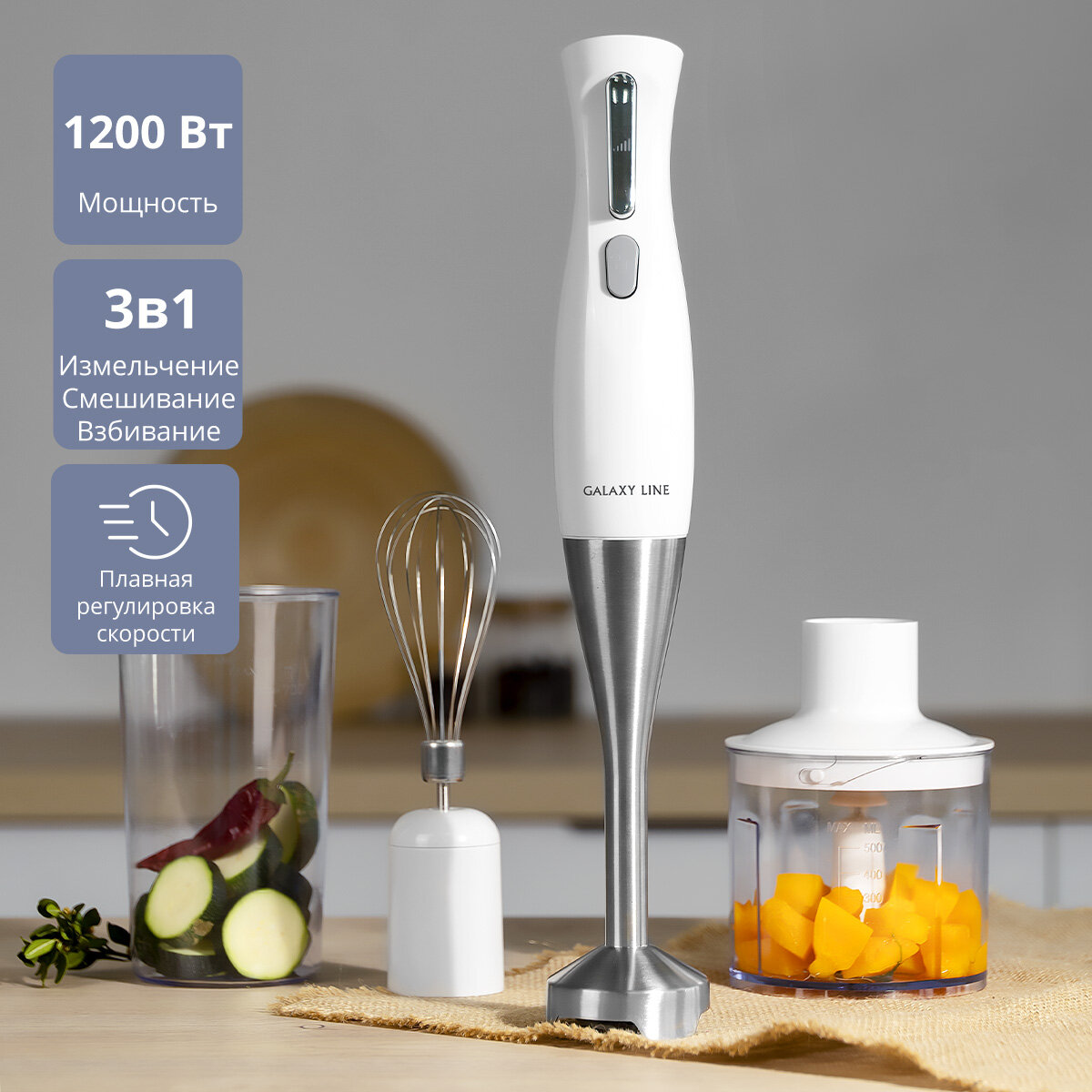 Блендерный набор GALAXY LINE GL2164 белый / 1200 Вт / насадка-измельчитель, венчик, блендер