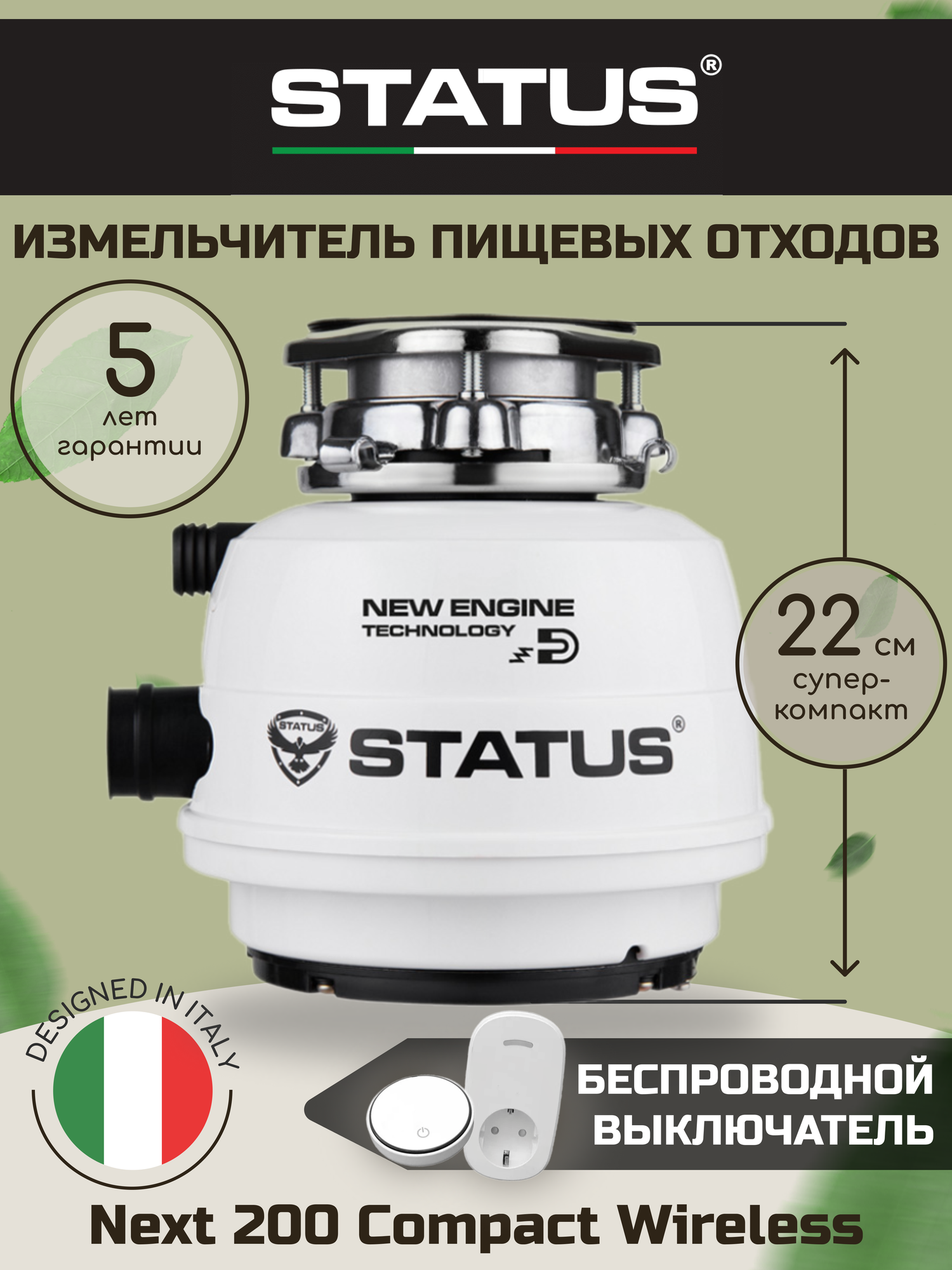 Измельчитель кухонный электрический для пищевых отходов в раковину STATUS NEXT 200 Compact c беспроводной кнопкой включения интересное: