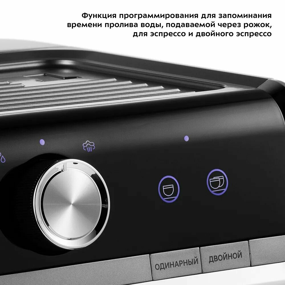 | Дополнительная информация | Комплектация 1. Кофеварка — 1 шт. 2. Резервуар для воды — 1 шт. 3. Поддон для капель со съемной решеткой — 1 шт. 4. Рожок — 1 шт. 5. Резервуар для кофейных зерен — 1 шт. 6. Крышка резервуара для кофейных зерен — 1 шт. 7. Фильтр — 1 шт. 8. Питчер — 1 шт. 9. Одинарный фильтр (single) — 1 шт. 10. Двойной фильтр (double) — 1 шт. 11. Металлический темпер — 1 шт. 12. Поддон для инструментов — 1 шт. 13. Щетка для чистки — 1 шт. 14. Игла для чистки — 1 шт. 15. Руководство по эксплуатации — 1 шт. 16. Коллекционный магнит — 1 шт.* *опционально |