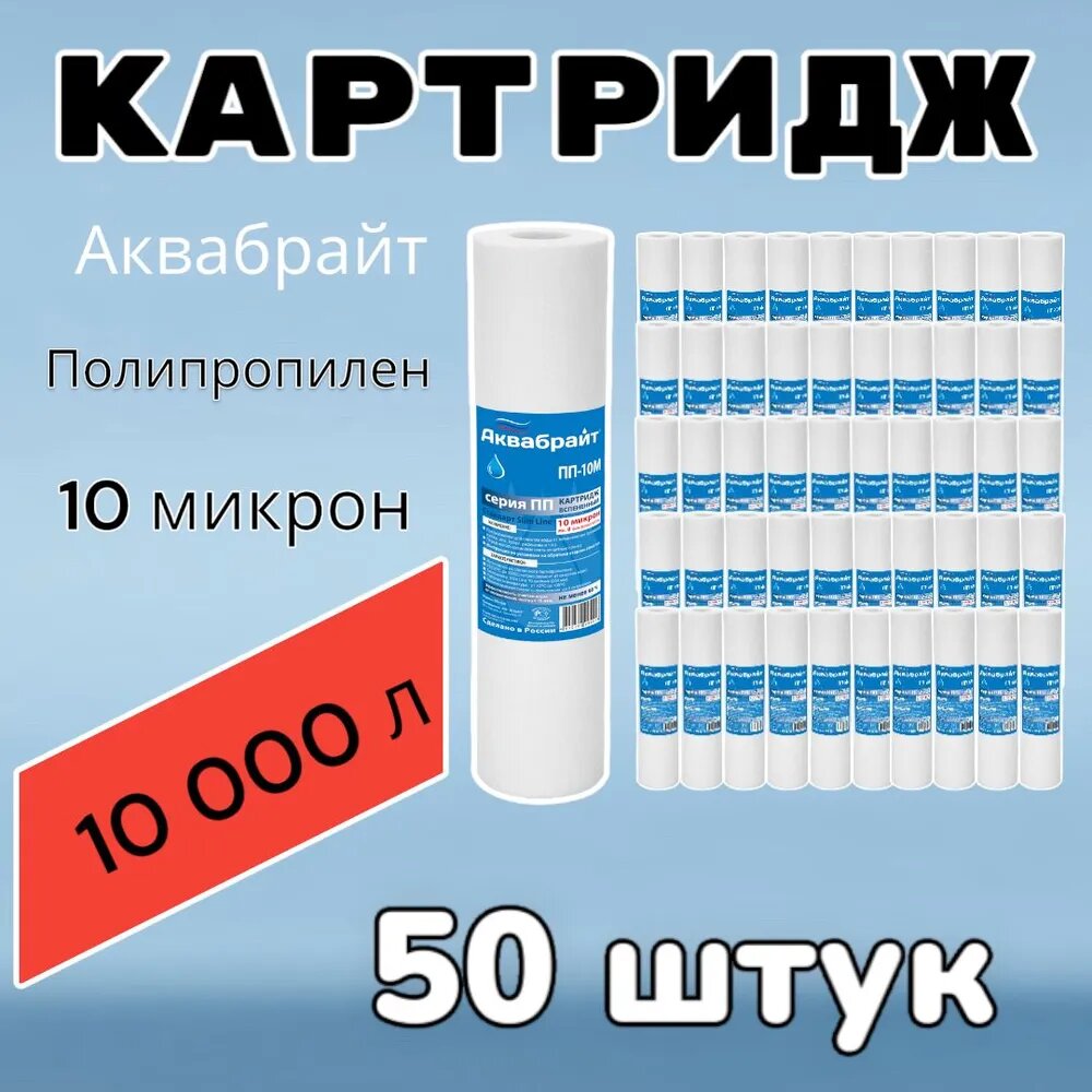 Купить Картридж для фильтра (50шт) полипропиленовый Аквабрайт "ПП-10М", для механической очистки воды