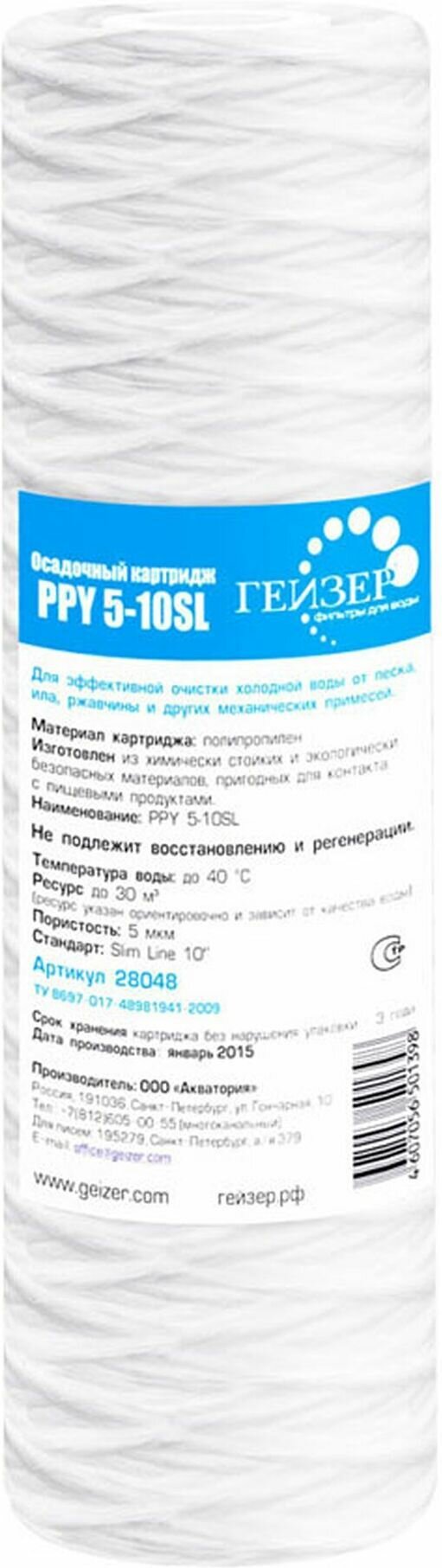 Картридж Гейзер PPY 10 -10SL, механическая фильтрация, ресурс 50000 л