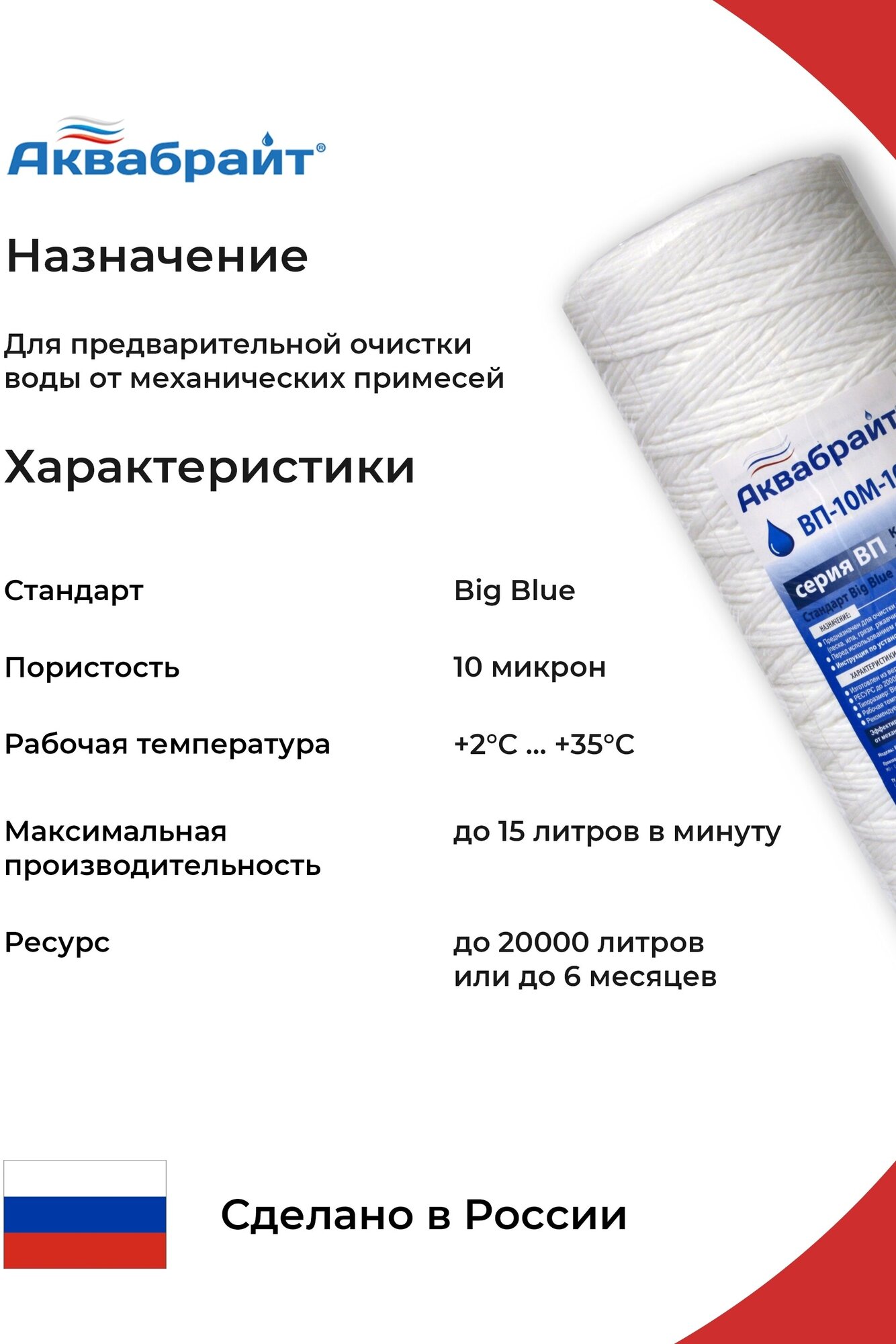 ВП-10М-10ББ Аквабрайт, веревочный картридж из полипропиленового шнура для механической очистки воды, Big Blue 10 (10bb)
