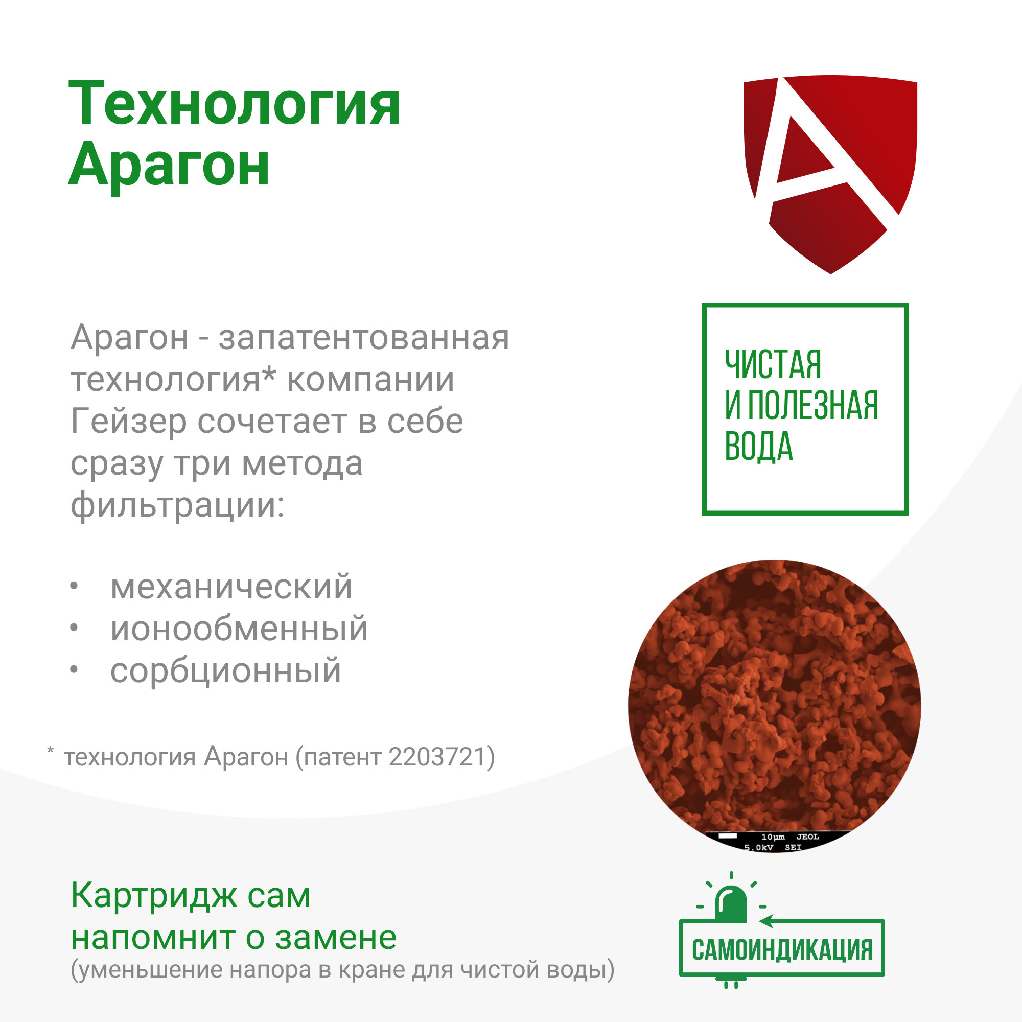 Картридж Гейзер Арагон 3 ЭКО, для мягкой воды, обеспечивает уникальную очистку по широкому спектру загрязнителей, включая бактерии, 30060