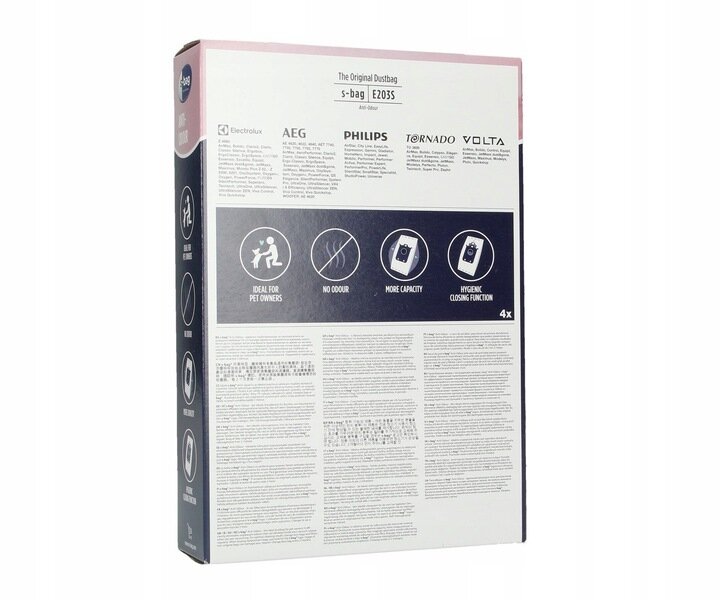 Мешки для пылесоса Philips, Electrolux, Bork e203s sBag Anti-Odour пылесборники с защитой от запахов, 4 шт.