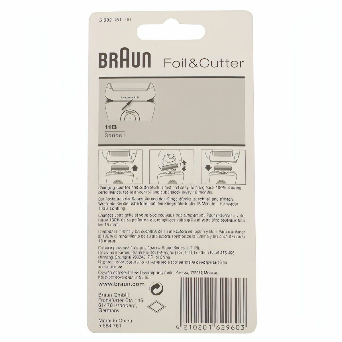 Сетка и режущий блок Braun 11B, Series 1, Series 1, черный