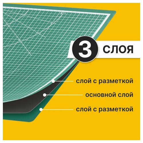 СохранитьКоврик (мат) для резки BRAUBERG, 3-слойный, А2 (600х450 мм), двусторонний, толщина 3 мм, зеленый интересное:
