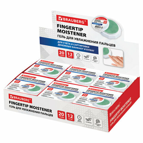 Гель для увлажнения пальцев BRAUBERG , 20 г (Малайзия), нежирный, нетоксичный, 224603
