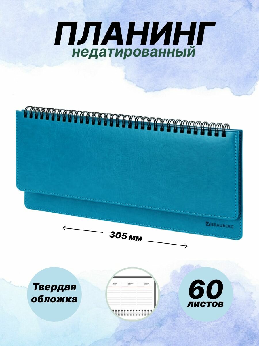 Планинг недатированный Brauberg Rainbow (305x140мм, 60л, кожзам, бирюзовый) 2шт. (111700)