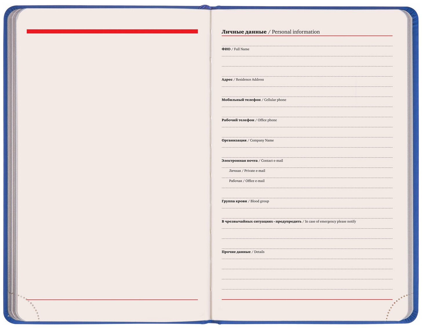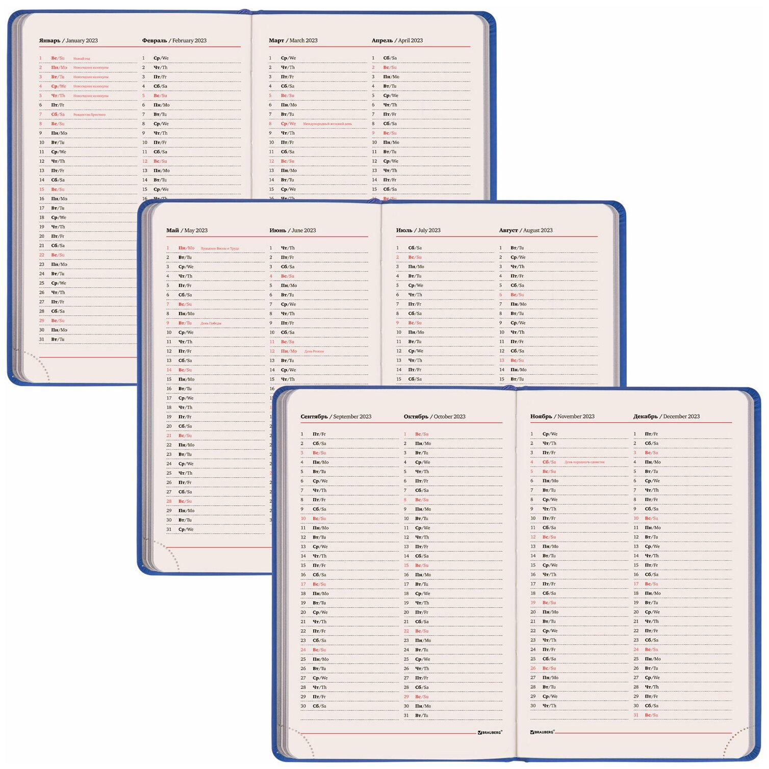 | Особенности | календарь / перфорация уголков / справочная информация / ляссе / цветной обрез / закругленные углы |