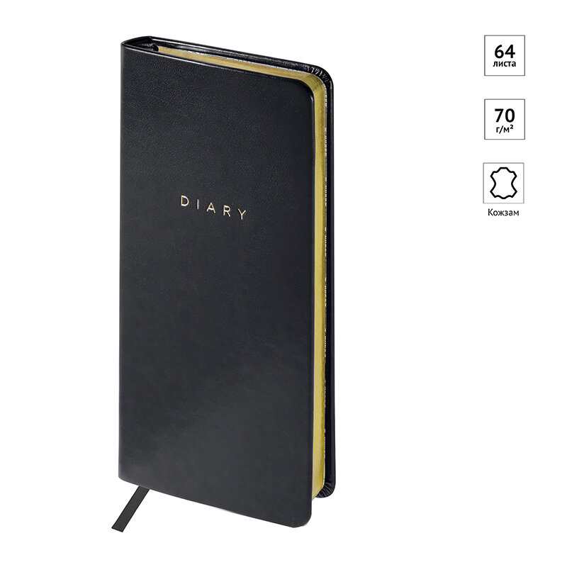 Еженедельник недатированный карманный, 64л., кожзам, OfficeSpace "Windsor ", черный, золотой срез