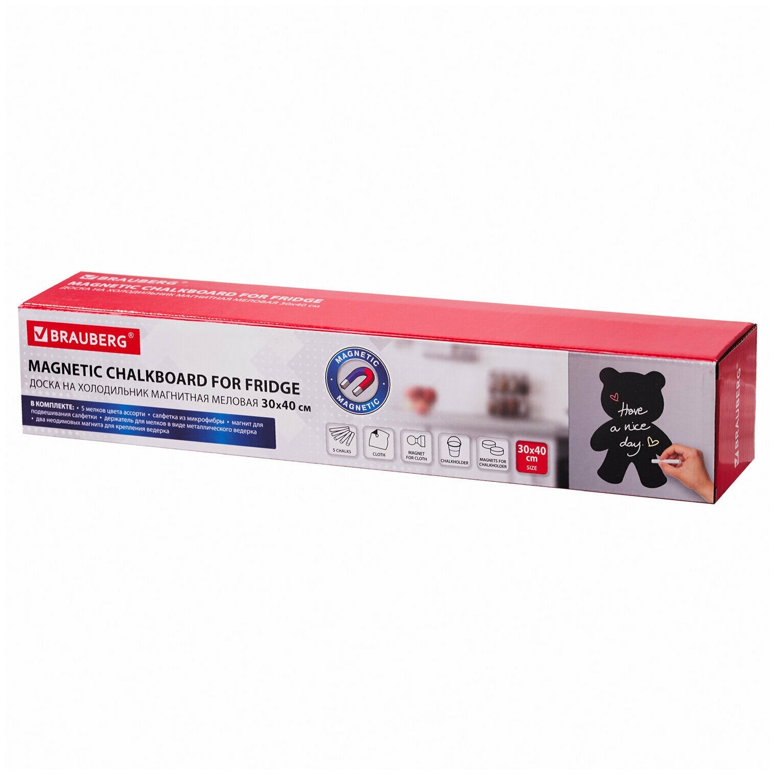 Доска на холодильник магнитно-меловая 30×40 см «Teddy Bear» с набором аксессуаров, BRAUBERG, 237841 /Квант продажи 1 ед./