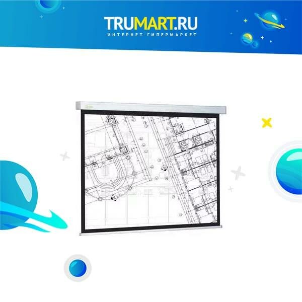 | Плюсы: | Механизм скручивания полотно тихий. Отверстия для подвешивания короба широкие, крепить не сложно. Полотно экрана не деформировано, по краям нет ворса и заломом. |