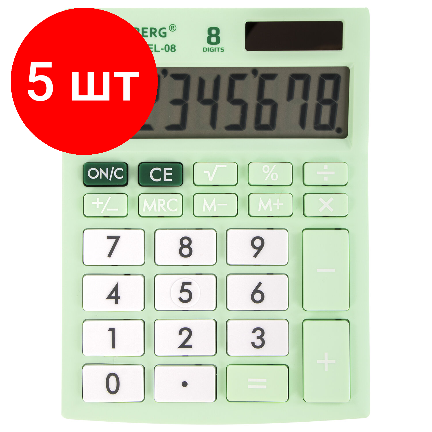 Купить Комплект 5 шт, Калькулятор настольный BRAUBERG ULTRA PASTEL-08-LG, компактный (154x115 мм), 8 разрядов, двойное питание, мятный, 250515