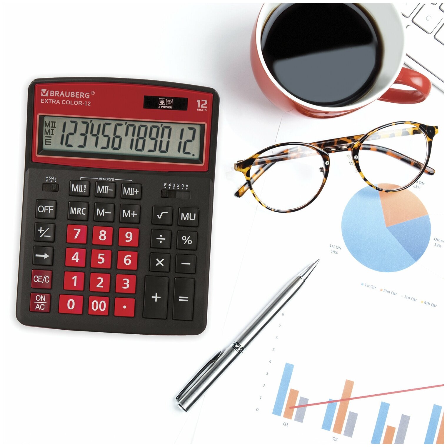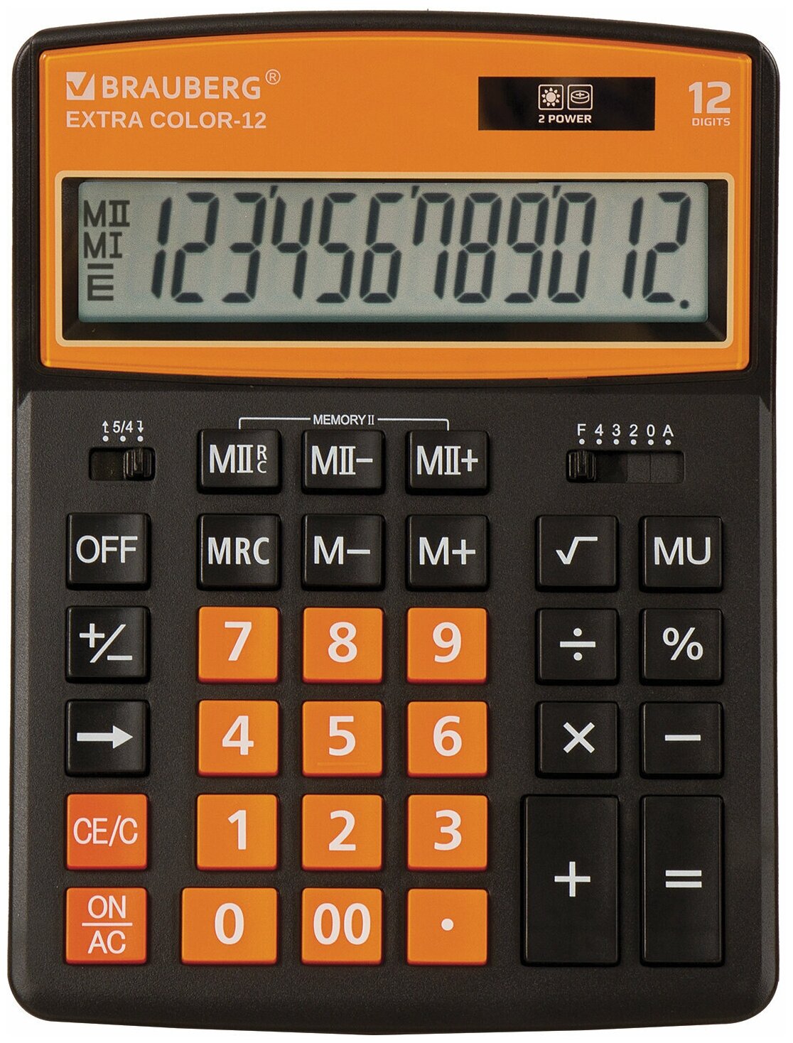 Калькулятор настольный BRAUBERG EXTRA COLOR-12-BKRG (206x155 мм), 12 разрядов, двойное питание, черно-оранжевый, 250478 В комплекте: 1шт.