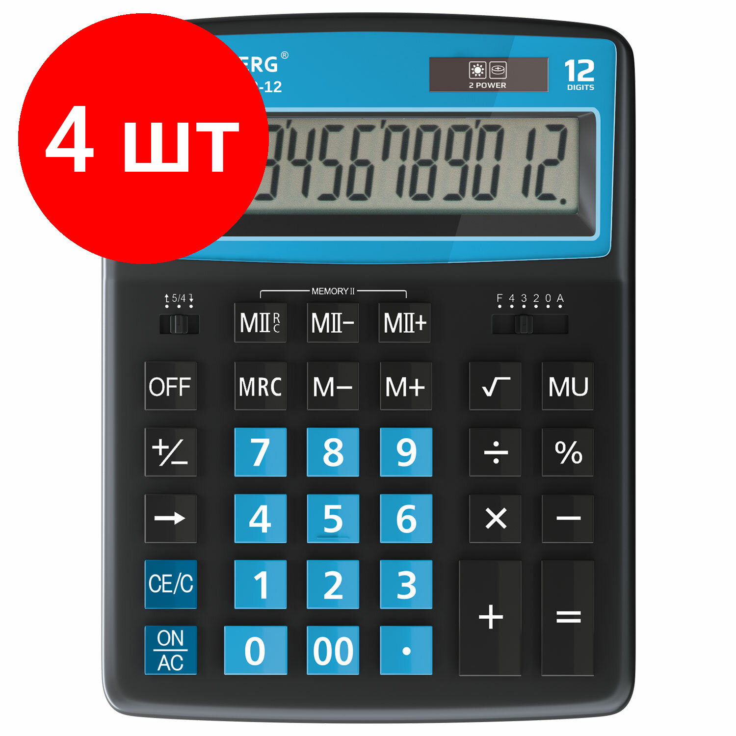 Купить Комплект 4 шт, Калькулятор настольный BRAUBERG EXTRA COLOR-12-BKBU (206x155 мм), 12 разрядов, двойное питание, черно-голубой, 250476