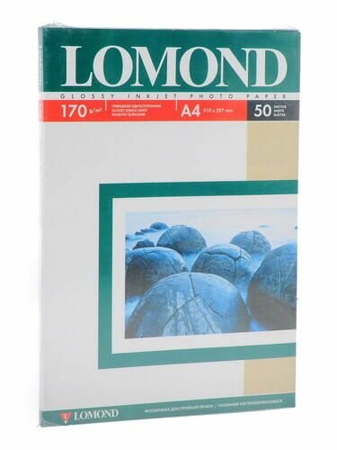 Фотобумага для струйной печати А4, 50 листов LOMOND, 170 г/м2, односторонняя, глянцевая (0102142)