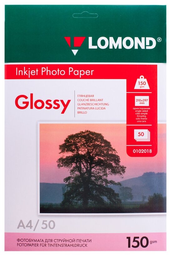 Lomond 0102018 Односторонняя глянцевая фотобумага для струйной печати , A4, 150 г/м2, 50 лис тов.