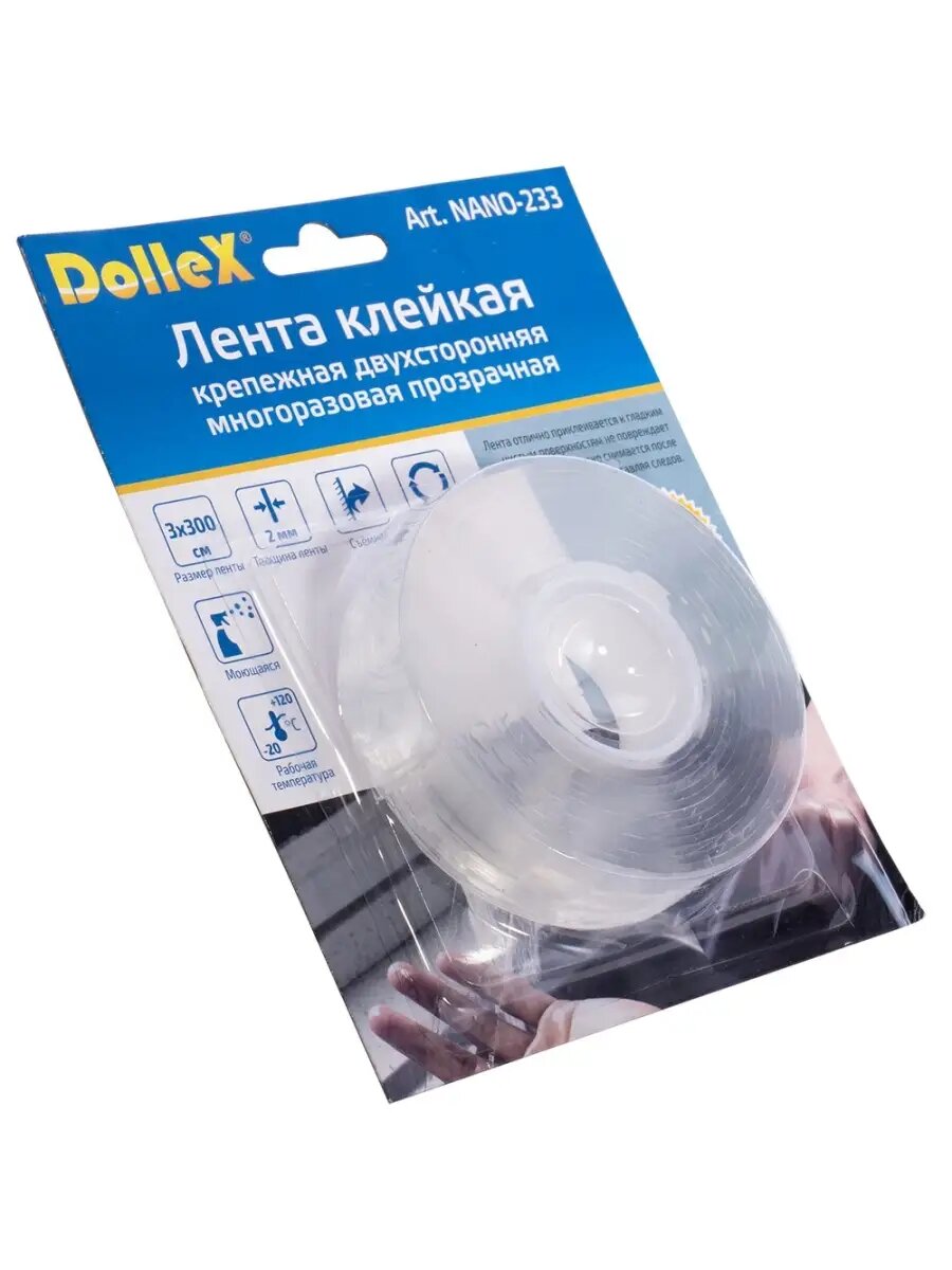 Лента Клейкая Крепежная Двухсторонняя Многоразовая Прозрачная 3 X 300 См DOLLEX арт. NANO-233