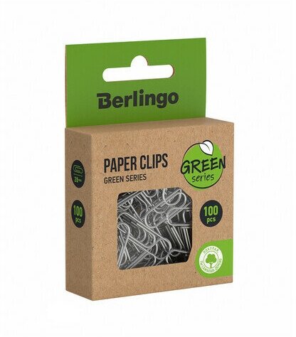 Скрепки 28мм, Berlingo, 100 шт, цветные, ПВХ упак., европодвес, зеленые (арт. 301703)