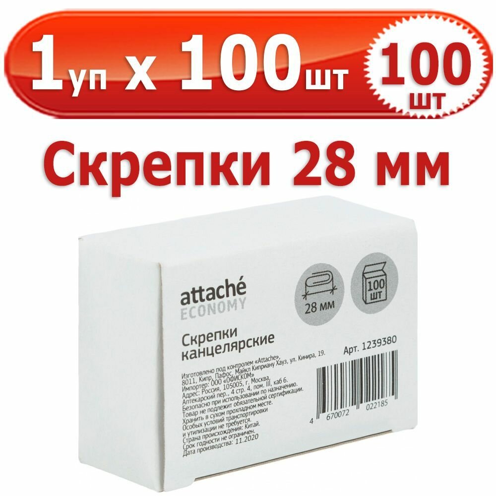 Скрепки Attache металлические оцинкованные 28 мм (100 штук в упаковке), 115672