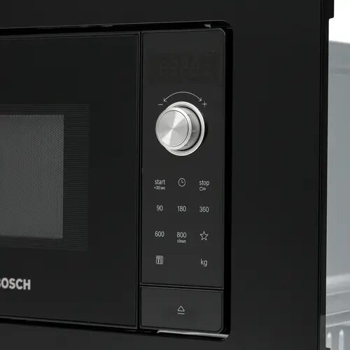 BOSCH Встраиваемые микроволновые печи BOSCH Serie 2, Встраиваемая микроволновая печь, черный, LED-дисплей, микроволны до 800 Вт, 5 ступеней мощности микроволн, поворотный переключатель, 7 автоматических программ, память на одну пользовательскую программу,