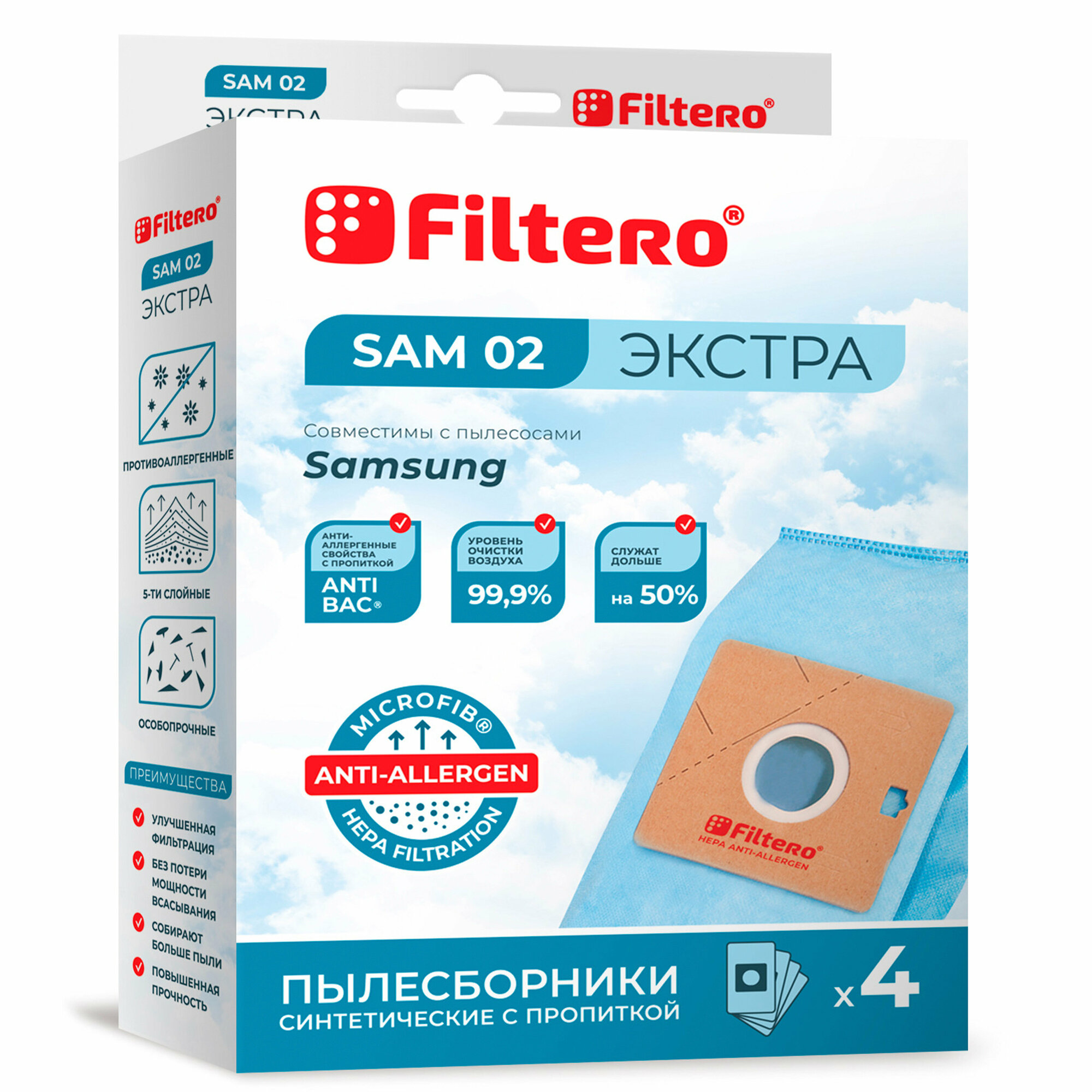 Купить Мешки-пылесборники Filtero SAM 02 Экстра, для пылесосов SAMSUNG, синтетические, 4 штуки