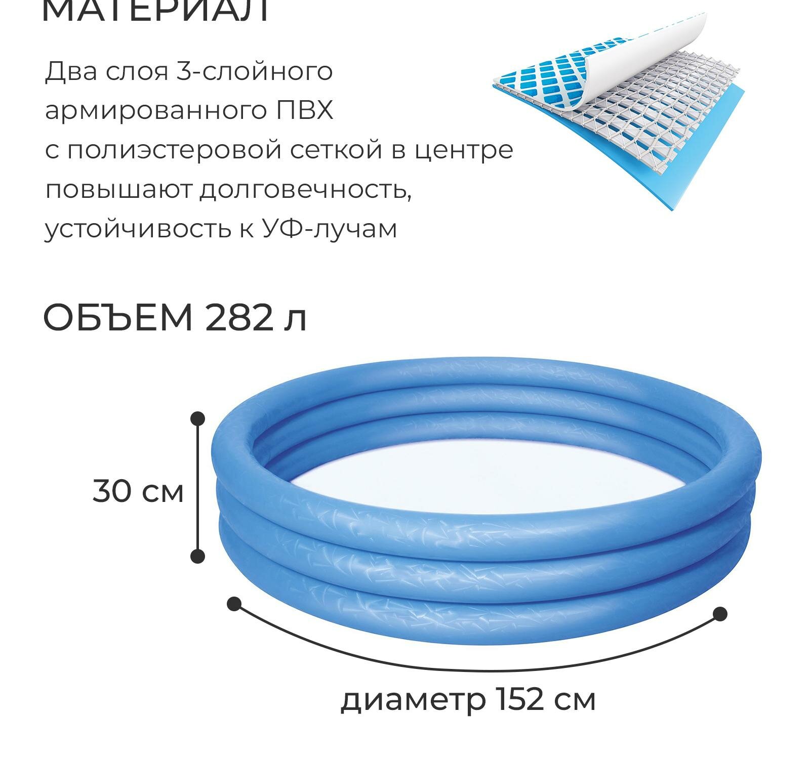 Бассейн надувной 152*30 см, 282 л, Bestway 51026