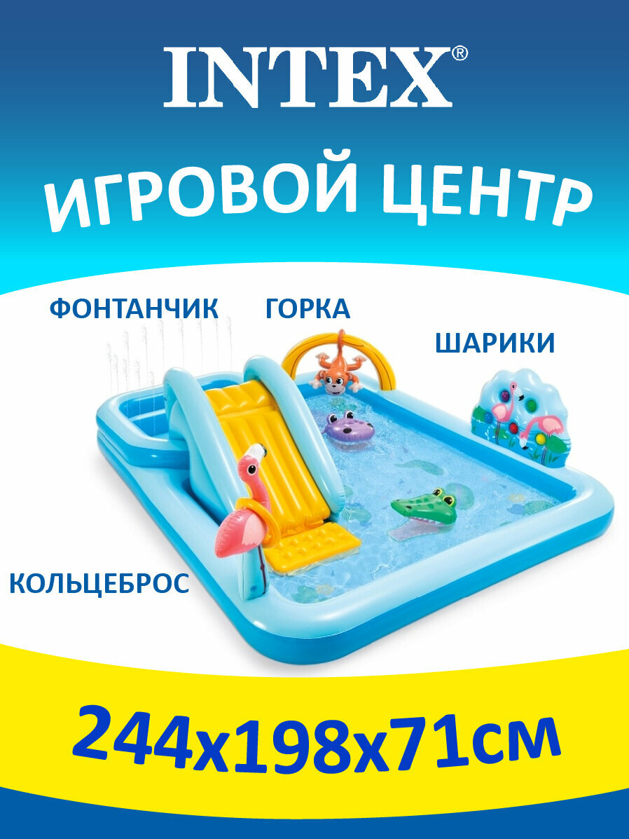INTEX Игровой центр Джунгли 57161 Intex 244*198*71 см с горкой и фонтаном, клапан 57161
