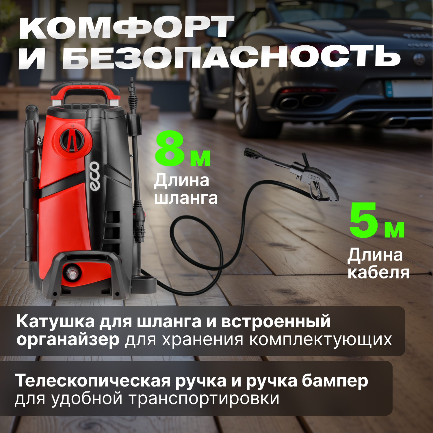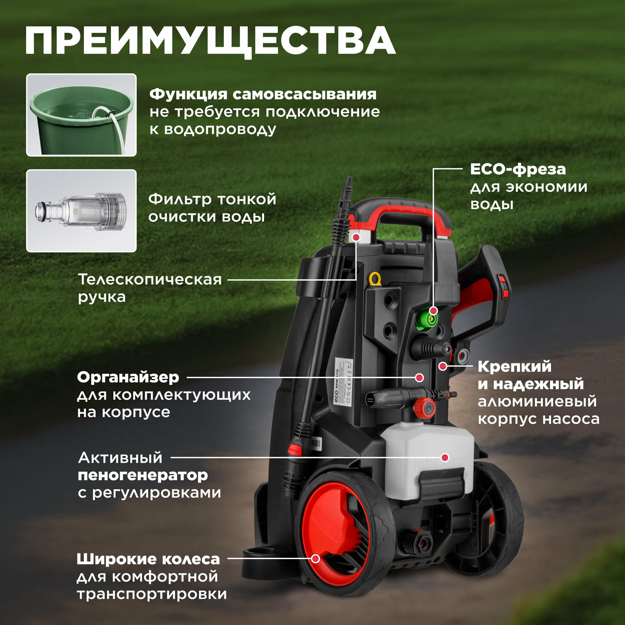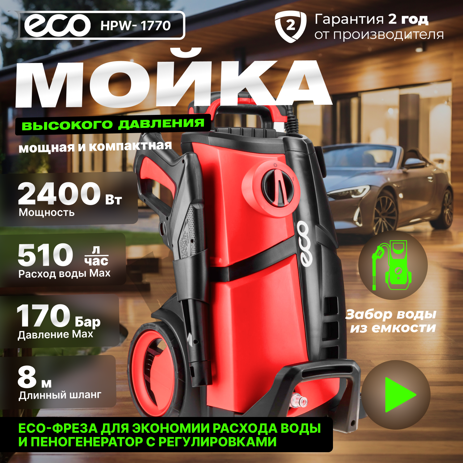 Очиститель высокого давления ECO HPW-1770 (2.40 кВт, 170 бар, 510 л/ч, самовсасывание, телескоп. ручка, активный пеногенератор) (HPW177000001)