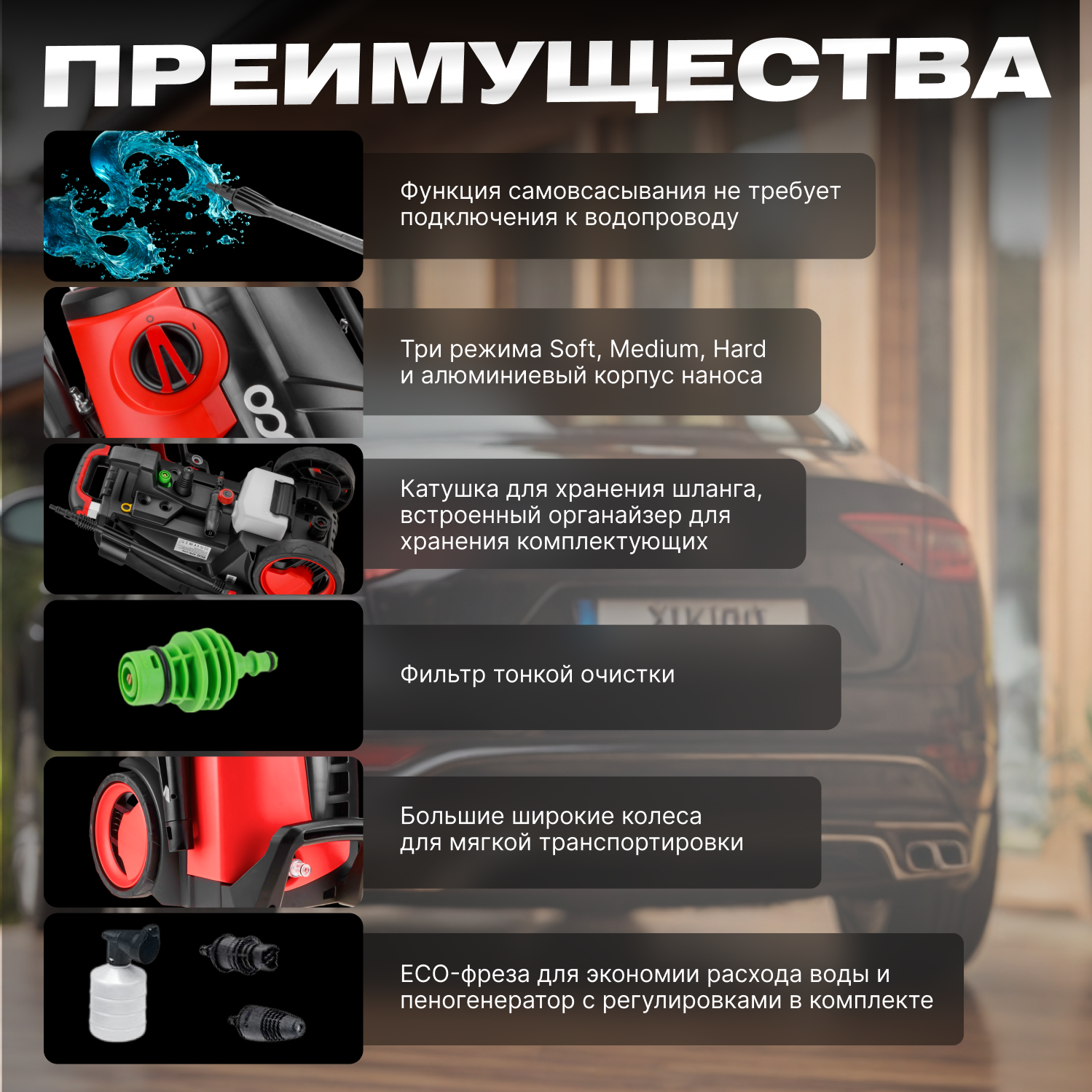| Минусы: | После 3 мойки клапан пистолета начал пропускать давление, из за этого мойка постоянно включается дабы набрать его |